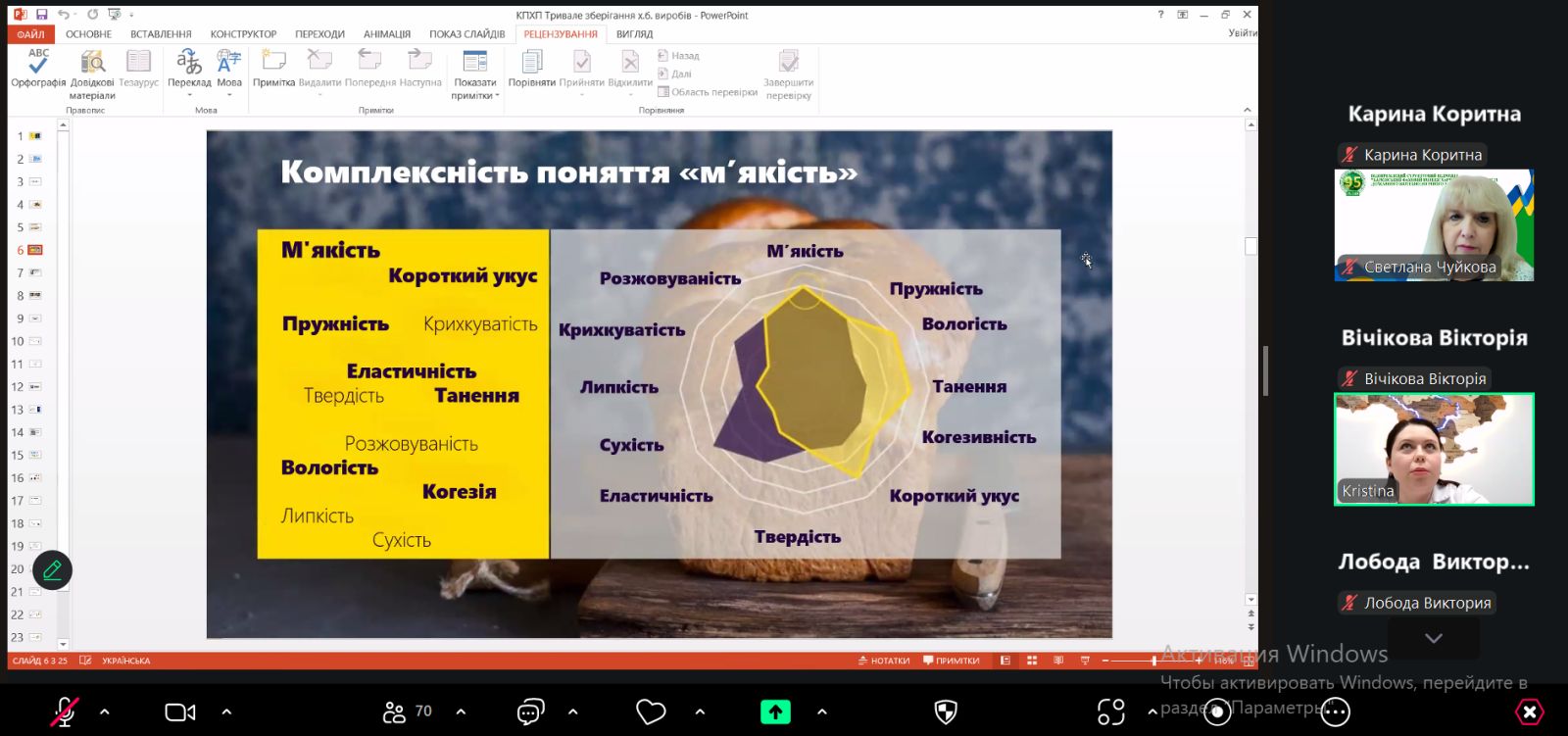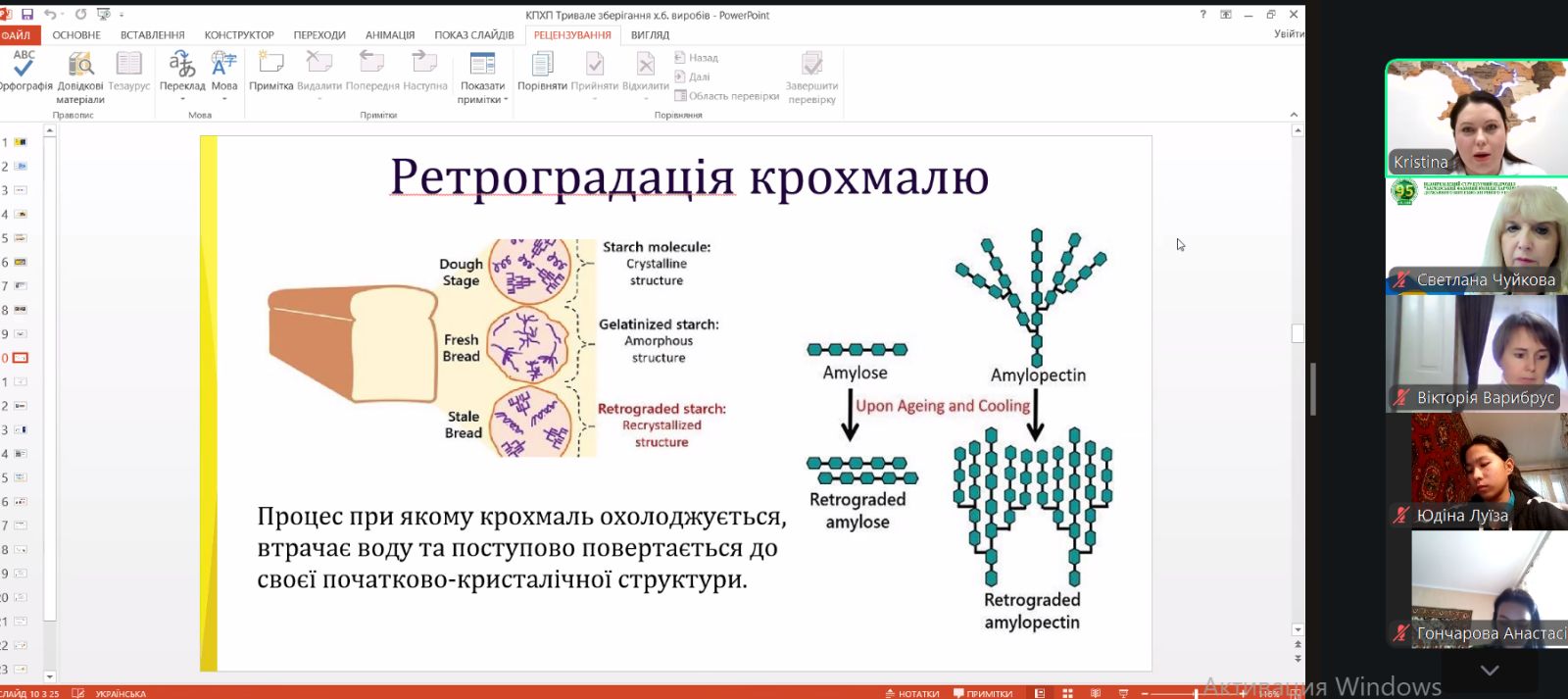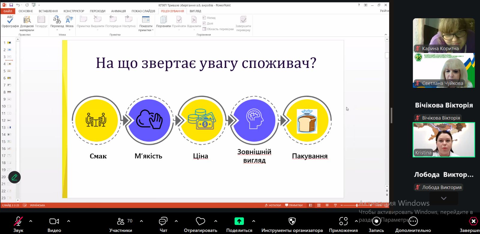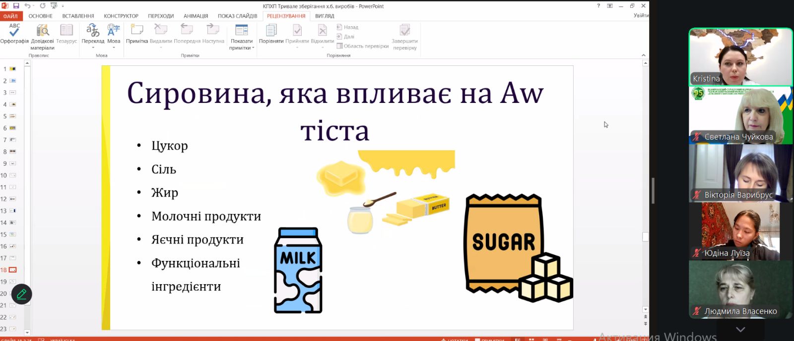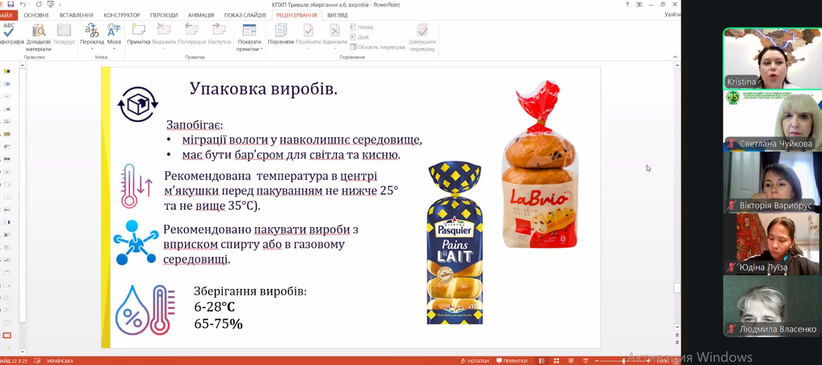 На платформі Zoom відбулася гостьова лекція, яку провела випускниця коледжу Крістіна СЛЄПЧЕНКО — індустріальний технолог компанії «Зеєландія», дочірнього підприємства королівської групи Zeelandia (Нідерланди). Тема лекції: «Особливості тривалого зберігання хлібобулочних виробів».