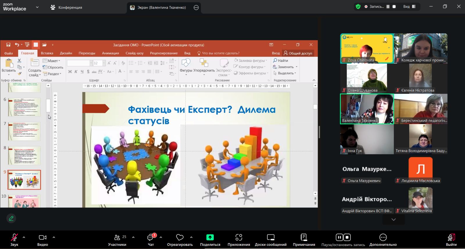 Друга частина засідання була присвячена творчо-орієнтованому напряму методичної роботи. Це був майстер-клас «Спеціаліст чи експерт? Дилема статусів» викладача нашого коледжу Зої ЧИНОВАТОЇ, яка поділилась досвідом впровадження інновацій у освітній процес. Викладач наголосила на умовах, які створює директор коледжу Ольга БОНДАРЕНКО, для особистісного зростання викладача і формування всебічно розвиненої особистості здобувача освіти, для їхньої результативної співпраці та для якісного надання освітніх послуг.