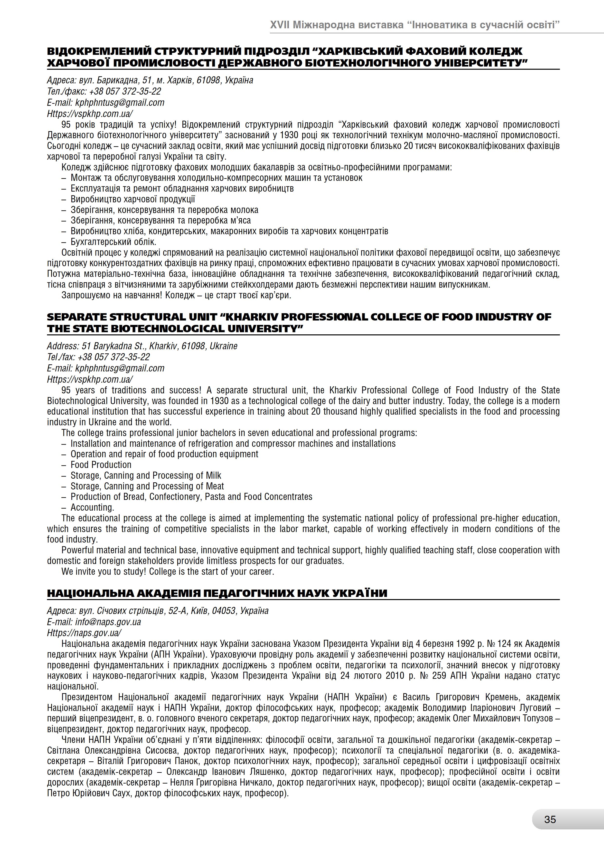 29-31 жовтня 2025 року відбулася XVII Міжнародна виставка «Інноватика в сучасній освіті», організатором якої була Компанія «Виставковий Світ» за інформаційної та методично-організаційної підтримки Національної академії педагогічних наук України, Державної наукової установи «Інститут модернізації змісту освіти».