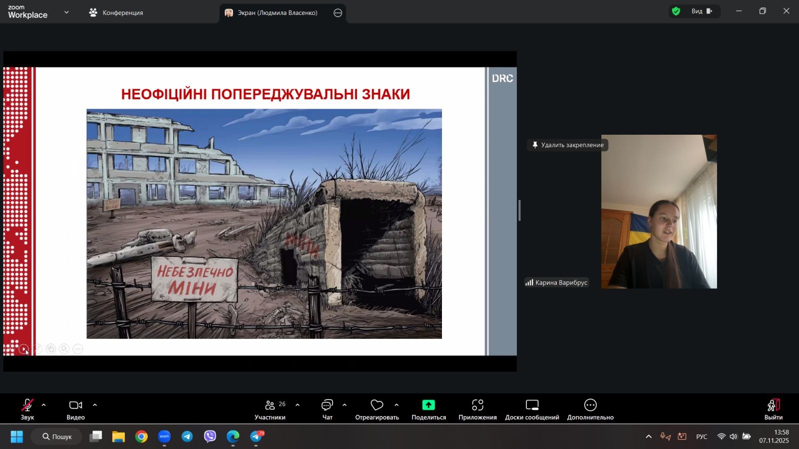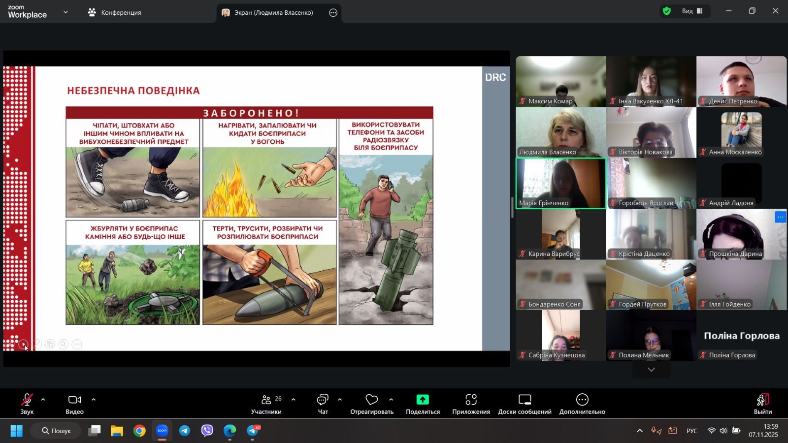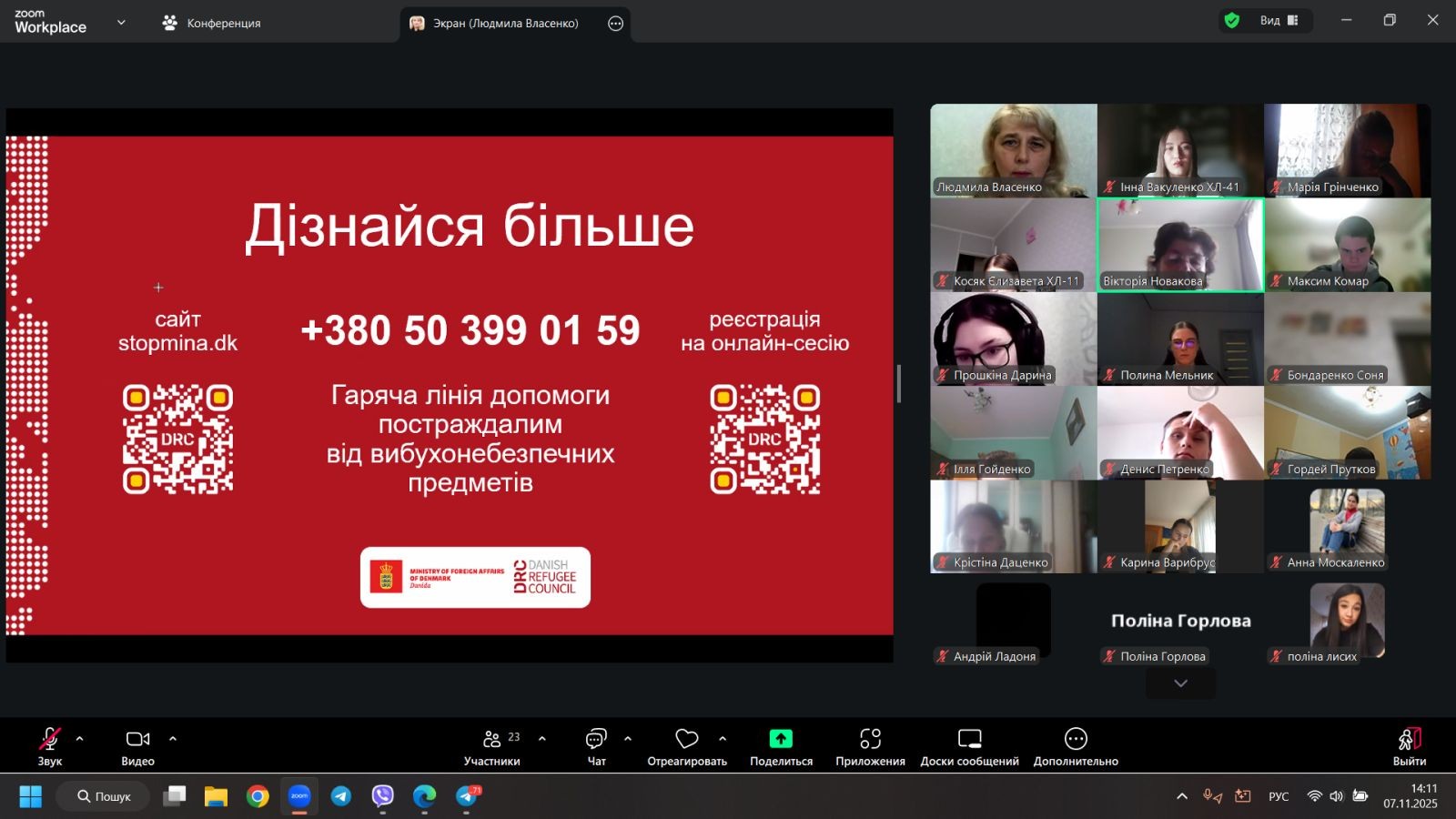 7 листопада 2025 року для студентів першого курсу (групи ХЛ-11, МХ-11) відбулася презентація соціального проєкту «STOP MINA», який присвячений надзвичайно важливій і, на жаль, актуальній темі – інформуванню про ризики, пов’язані з мінами та вибухонебезпечними залишками війни. Проєкт реалізований за ініціативою Студентського Парламенту коледжу та підтримки викладачів-тренерів Людмили ВЛАСЕНКО та Вікторії НОВАКОВОЇ.