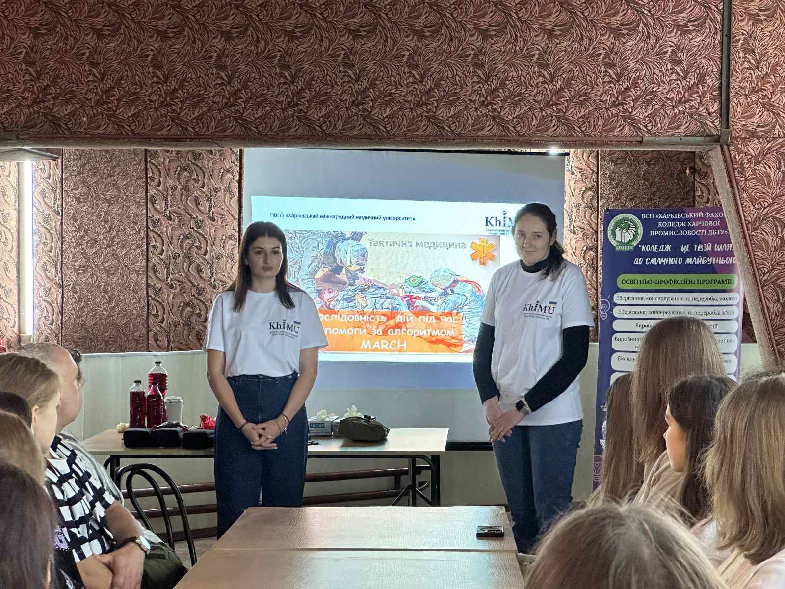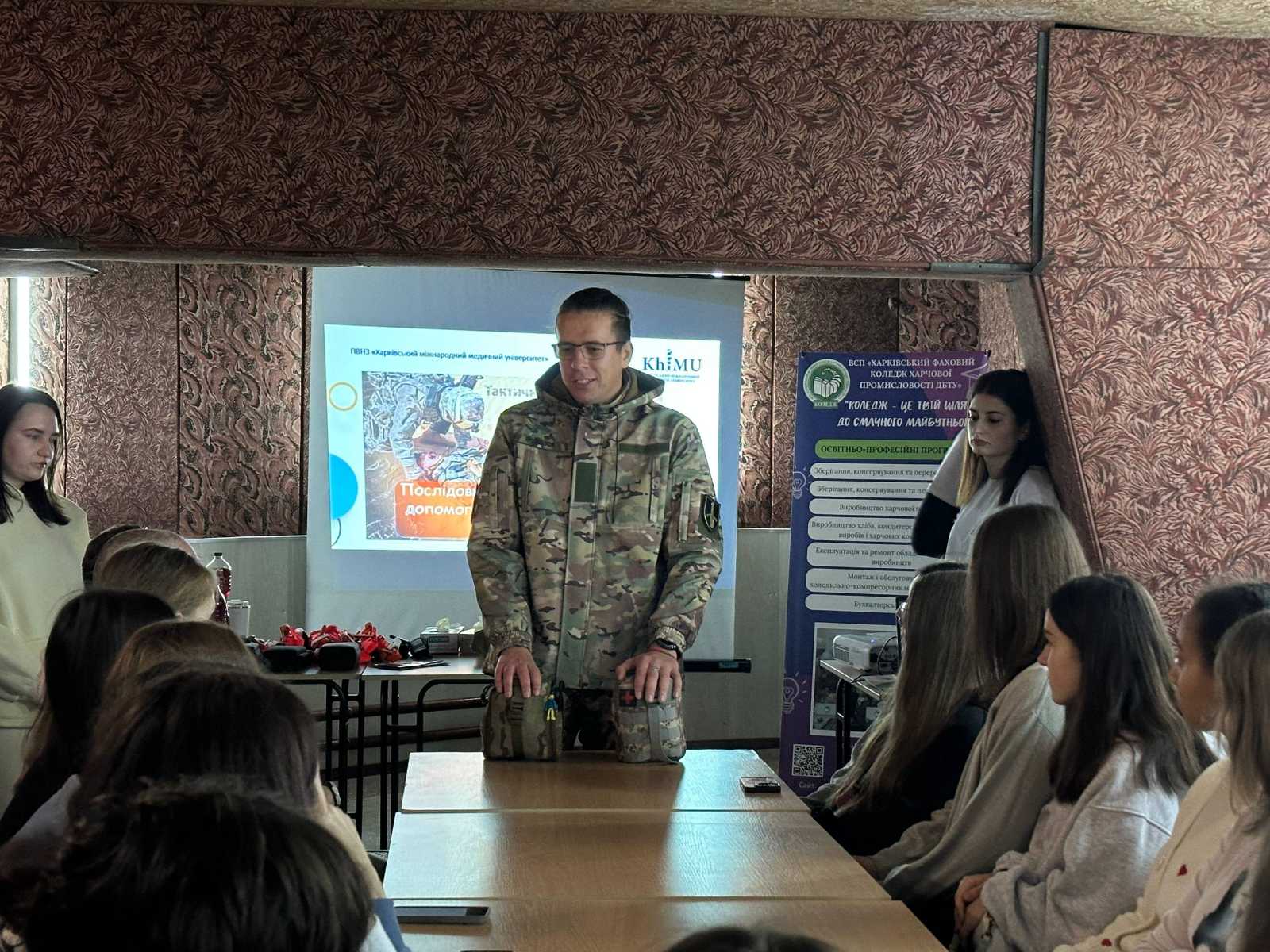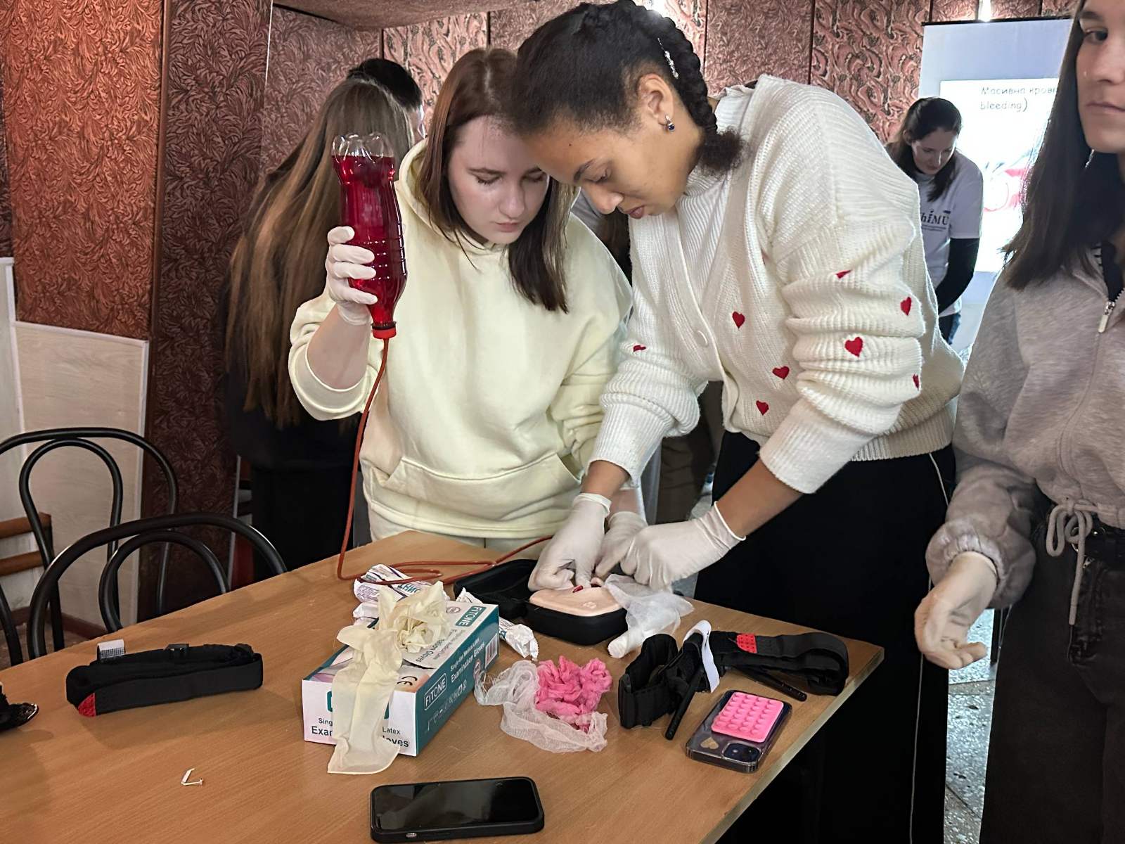 12 листопада 2025 року в рамках соціального проекту «STOP MINA», під керівництвом викладачів-тренерів Людмили ВЛАСЕНКО та Вікторії НОВАКОВОЇ, відбувся практичний тренінг із надання домедичної допомоги за участю студентів-волонтерів Харківського Міжнародного медичного університету, під керівництвом завідувача кафедри фундаментальних та загальноосвітніх дисциплін Тетяни КУДРЯВЦЕВОЇ та військовослужбовця збройних сил України, інструктора з тактичної медицини – Олександра БОХАНОВА.