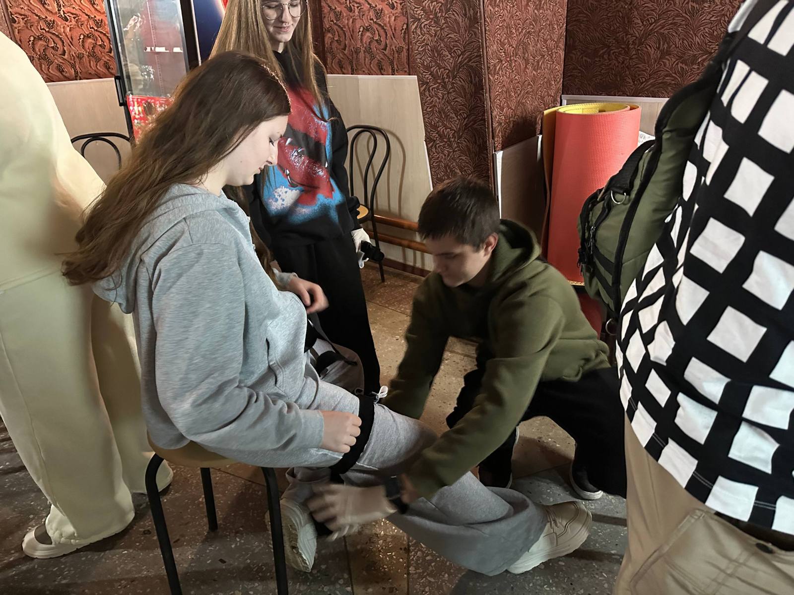 Студенти коледжу набули практичні навички у накладанні медичних турнікетів – засобів для тимчасової зупинки масивної кровотечі, наприклад, при пораненнях при детонації осколкової або фугасної міни.