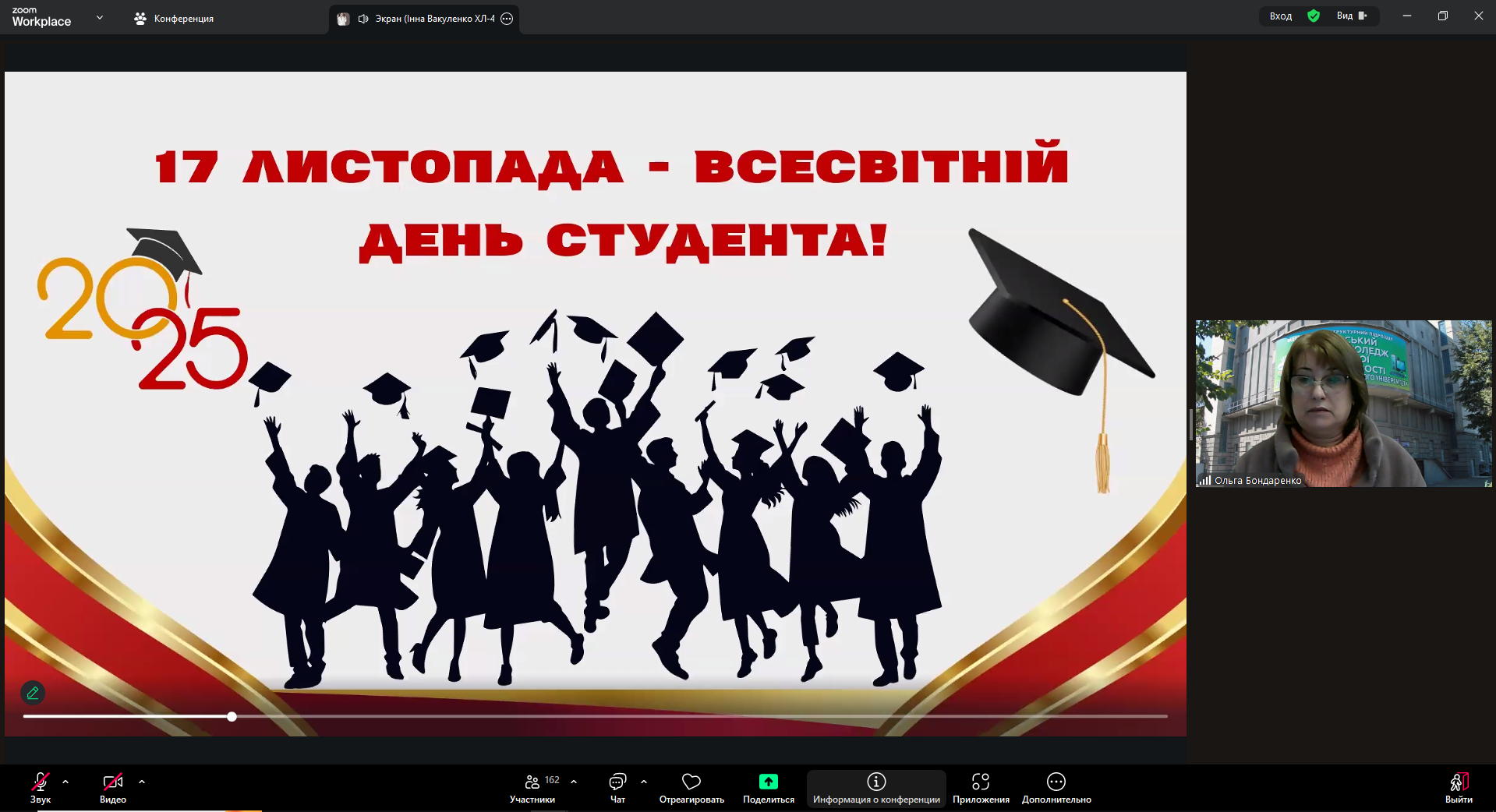 Студентську спільноту привітала в.о. директора коледжу Ольга Михайлівна Бондаренко, яка наголосила на тому факті, що студентство – це найпрогресивніша і найперспективніша частина суспільства, яка формує майбутнє.