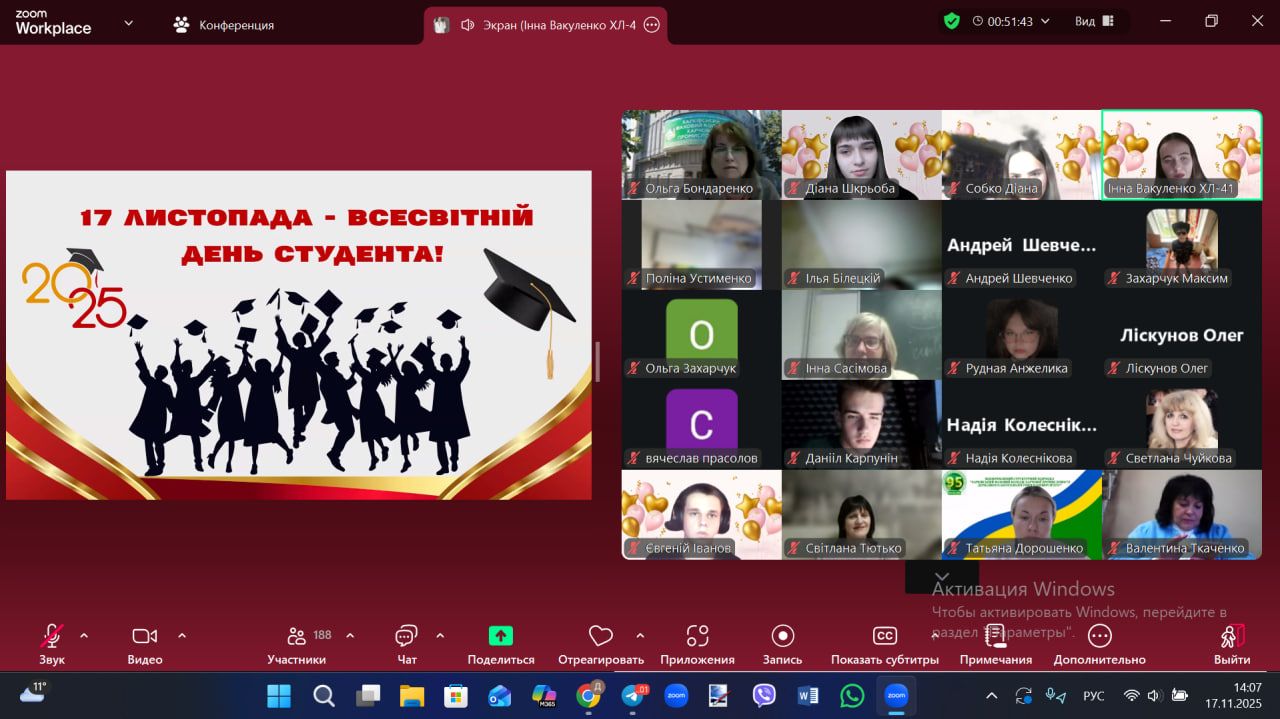 17 листопада студенти всього світу відзначають своє свято. Студенти нашого коледжу також долучилися до цієї події. Ініціативна група Студентського парламенту провела урочистий захід «З МІЖНАРОДНИМ ДНЕМ СТУДЕНТА!».