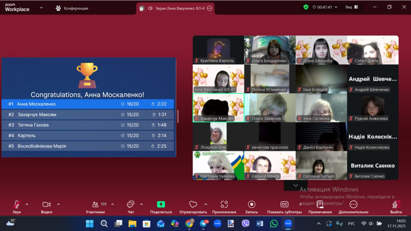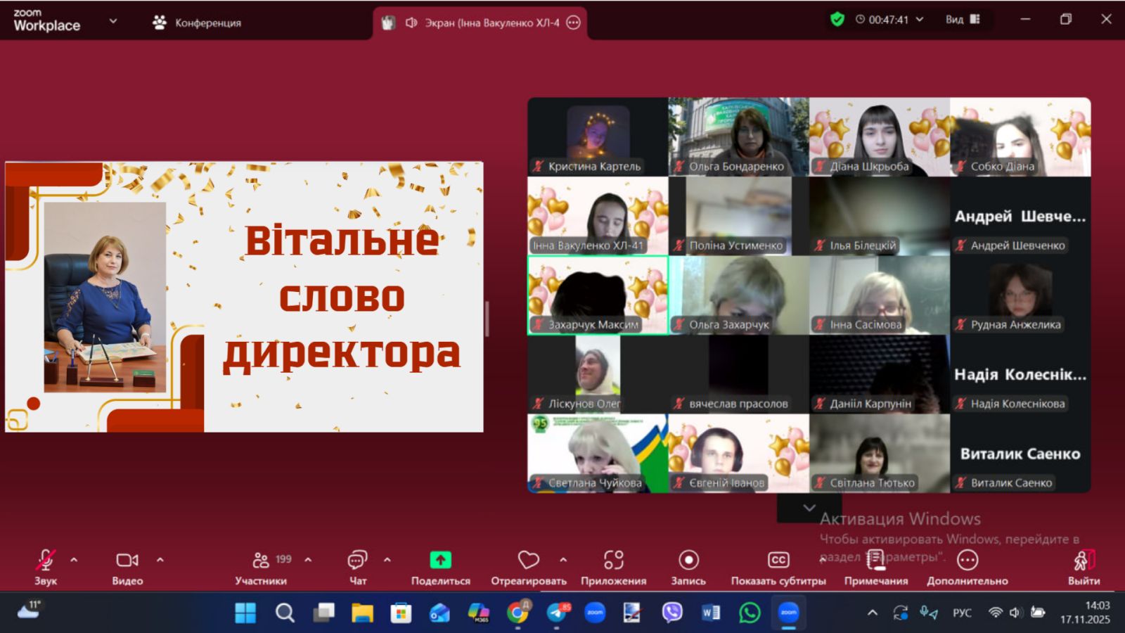 На заході було багато спогадів, веселих розповідей про нинішній формат освітнього процесу, конкурси та жарти. Висловлювалися слова вдячності в.о. директора за сучасні інноваційні підходи у організації освітнього процесу і педагогічним працівникам за отримані міцні знання та уміння.