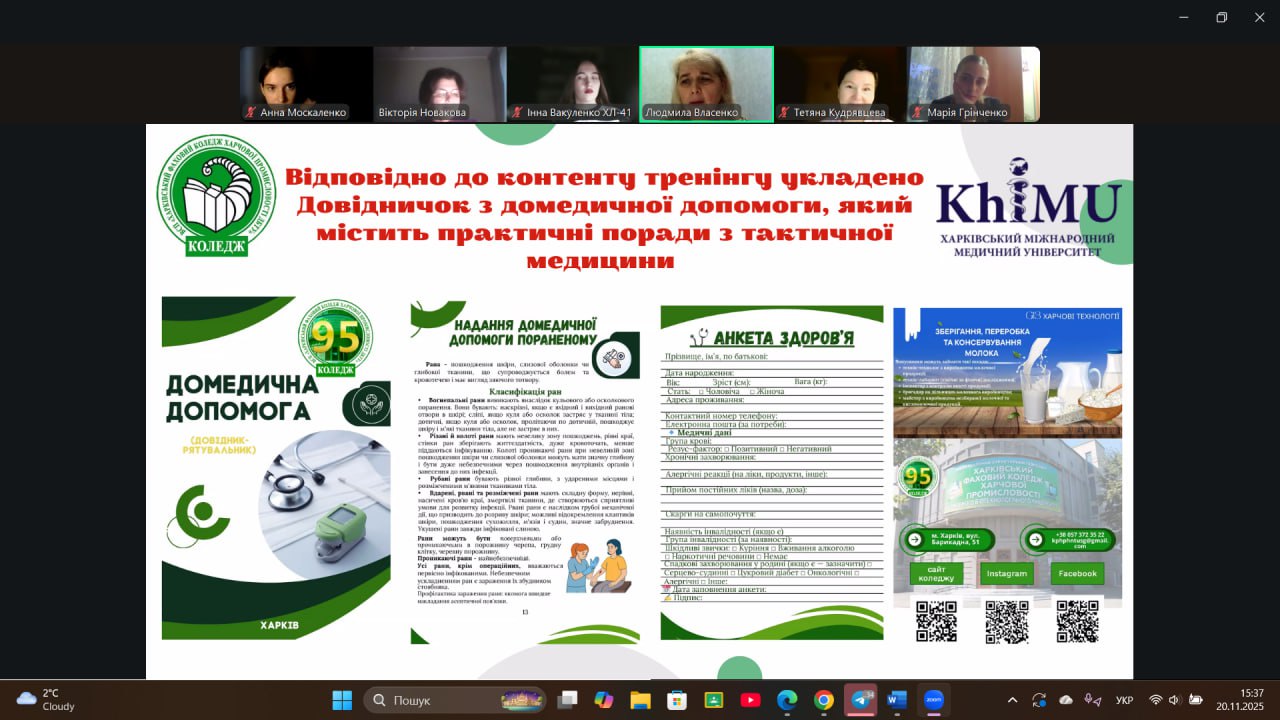 У межах засідання викладачі продемонстрували напрацьовані методичні матеріали, освітні відео, інтерактивні презентації, а також розповіли про практичні тренінгові заняття, що проводилися для студентів у рамках соціального проєкту «STOP MINA». Проєкт має військово-патріотичне спрямування та покликаний сформувати у молоді відповідальне ставлення до питань особистої та громадської безпеки, уміння діяти в умовах потенційної загрози, а також поширити корисні знання серед широкого загалу.