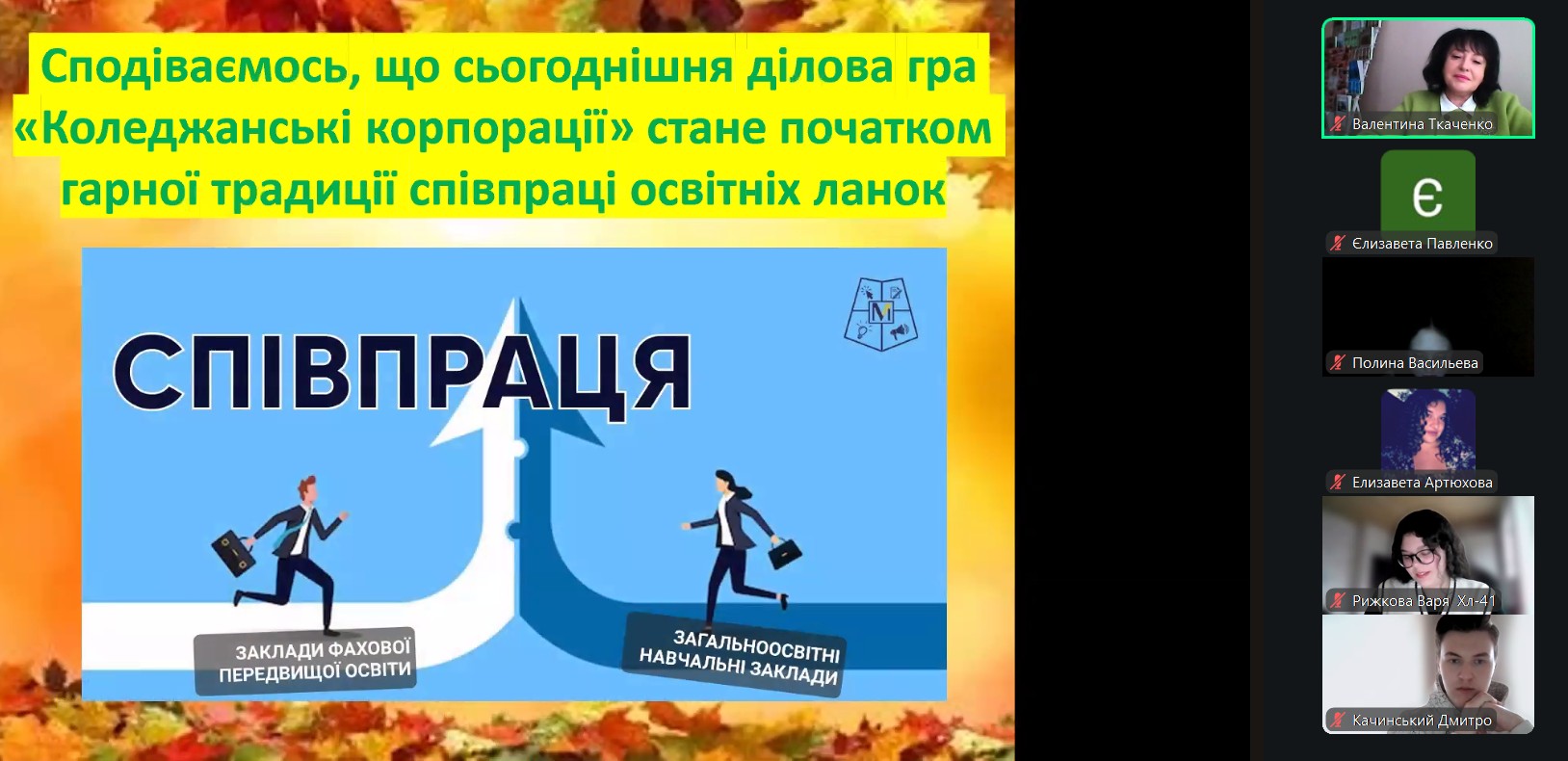 21 листопада стартувала ділова гра «КОЛЕДЖАНСЬКІ КОРПОРАЦІЇ», як реалізація однойменного проєкту. Цього разу у грі взяли участь три корпорації: «Шлях до зірок», «Street Food: Смаки світу на вулицях міста», які представляв Відокремлений структурний підрозділ «Харківський фаховий коледж харчової промисловості Державного біотехнологічного університету» та «Амазонки» Комунального закладу Солоницівський ліцей №3 Солоницівської селищної ради.