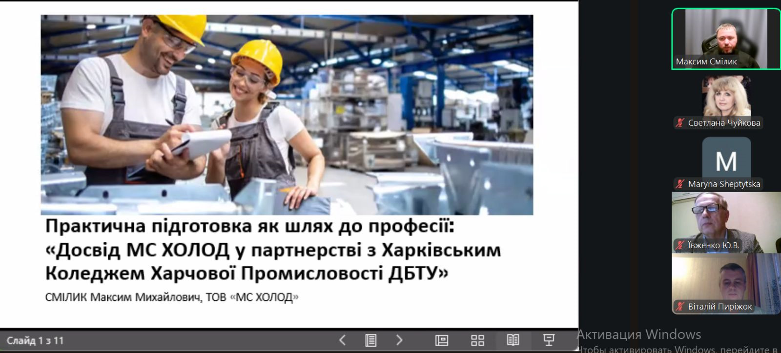 Під час пленарного засідання виступив Смілик Максим Михайлович, засновник компанії «МС Холод», який поділився досвідом багаторічної співпраці підприємства з коледжем у напрямку практичної підготовки здобувачів освіти. Він наголосив на важливості роботодавців у формуванні сучасних фахівців та підкреслив ефективність спільних освітньо-виробничих проєктів.