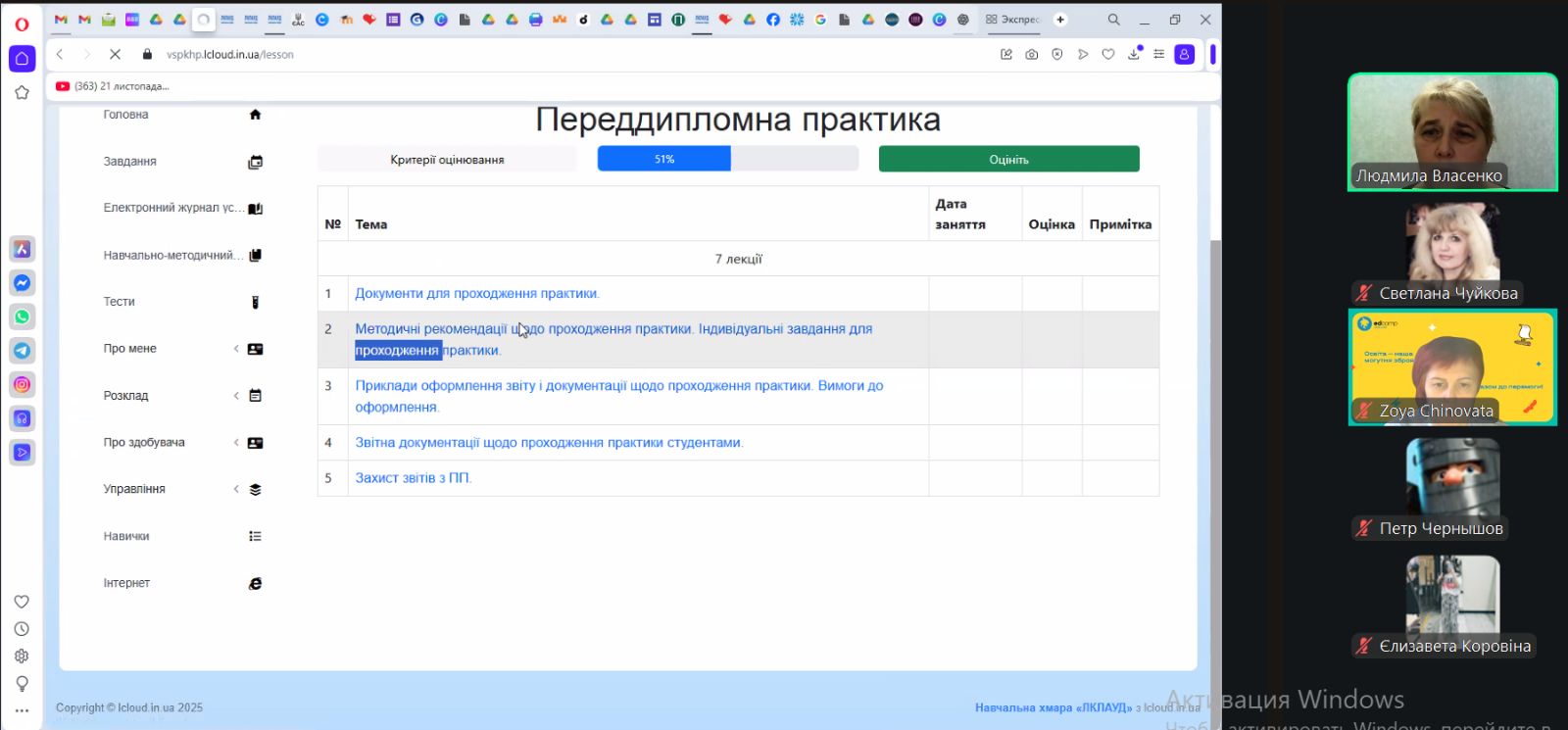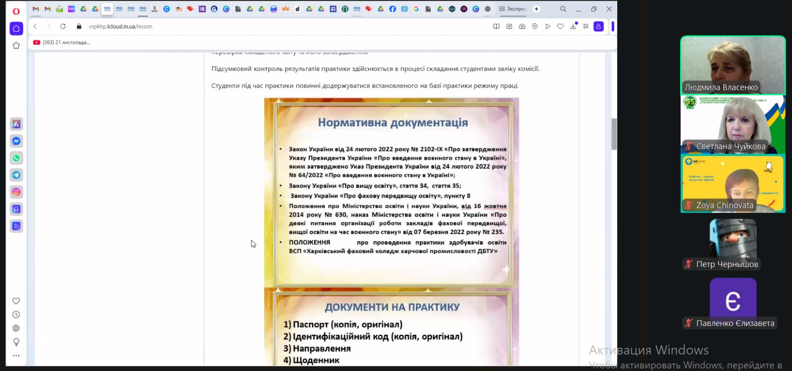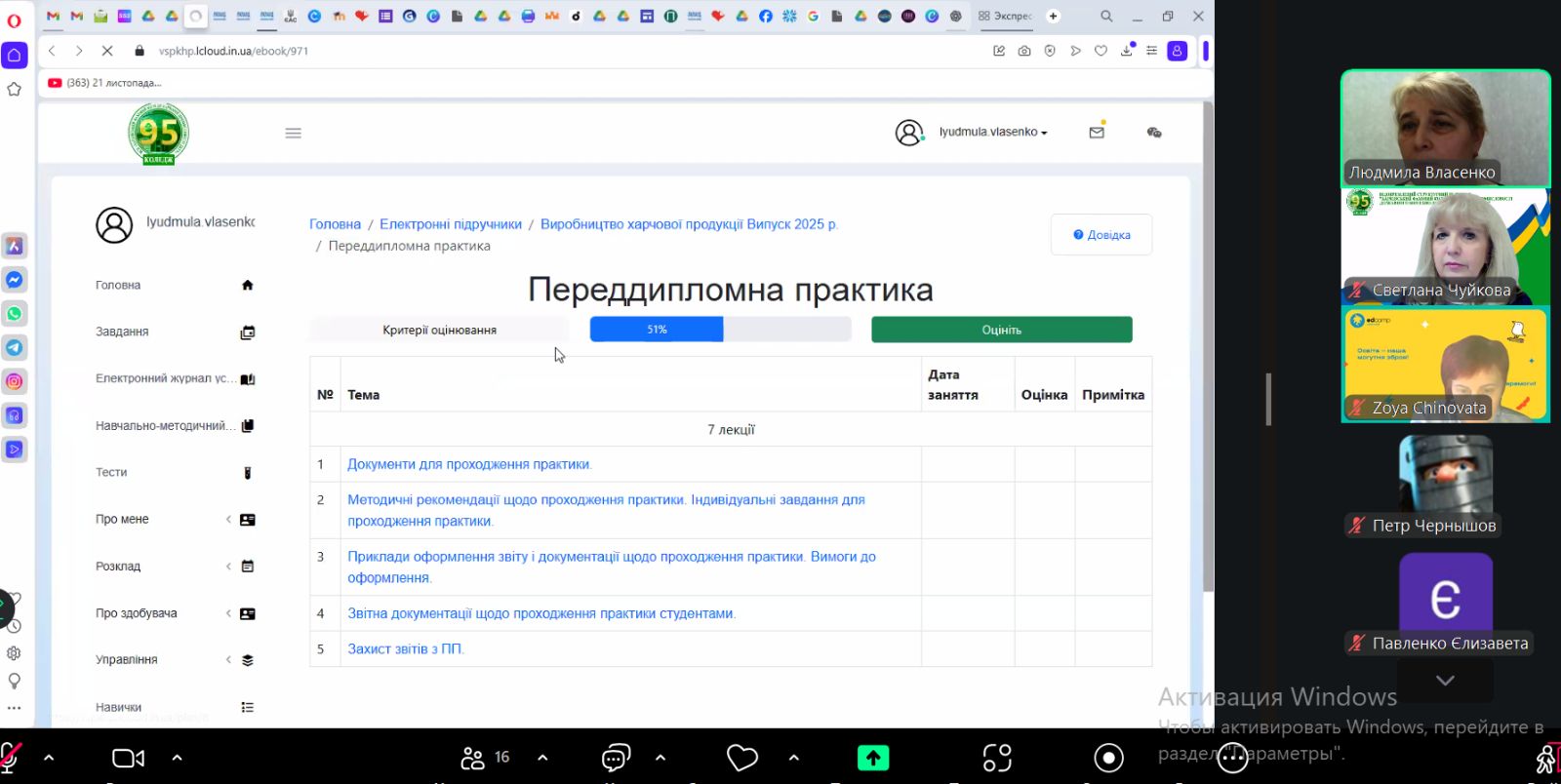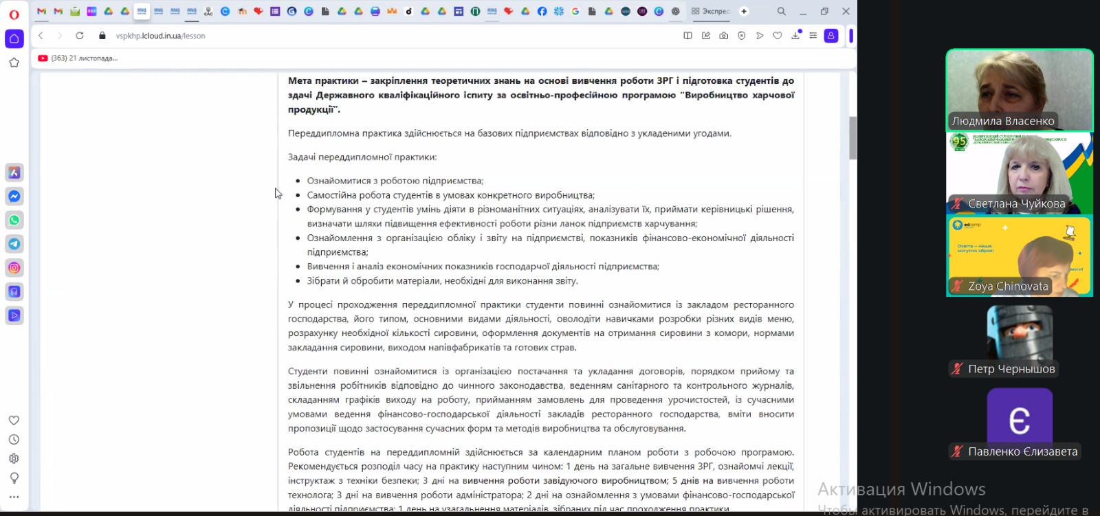 28 листопада 2025 року на платформі ZOOM відбулися збори з питань організації та проведення переддипломної практики для студентів групи ТХ-41 за освітньо-професійною програмою Виробництво харчової продукції.
