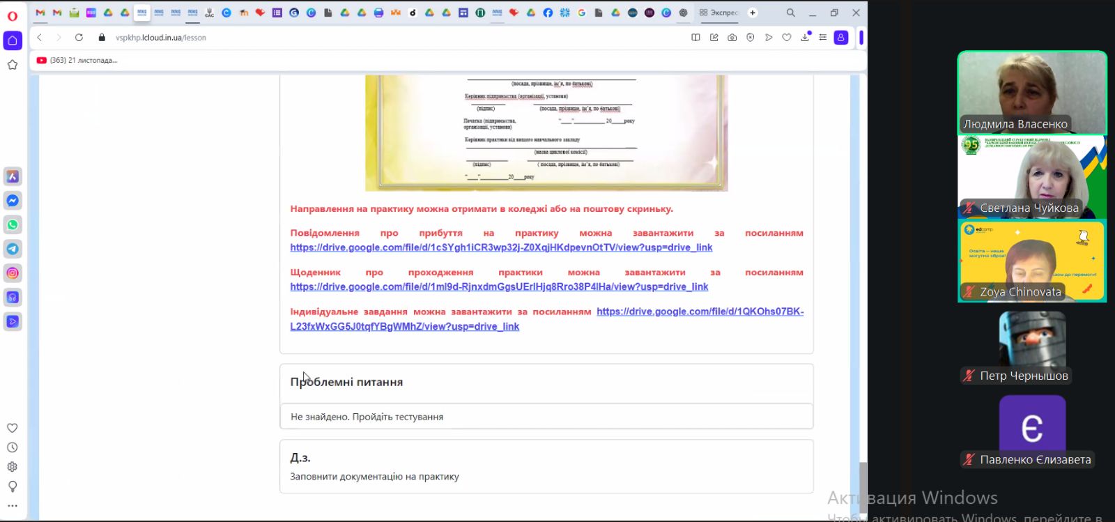 Людмила Леонідівна Власенко, викладач технології, надала роз’яснення щодо виконання та оформлення звіту, ознайомила з методичними вказівками, а також нагадала про можливості та порядок користування навчальною платформою LCloud.