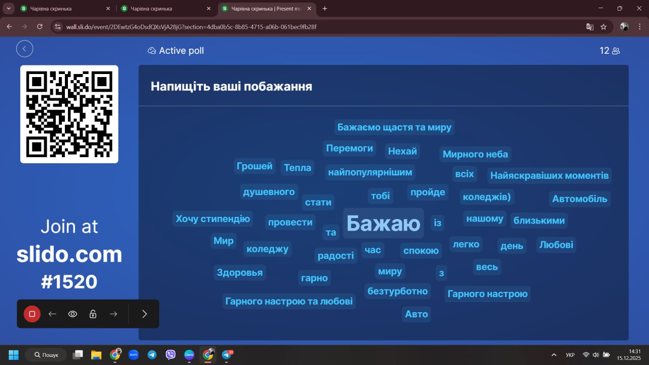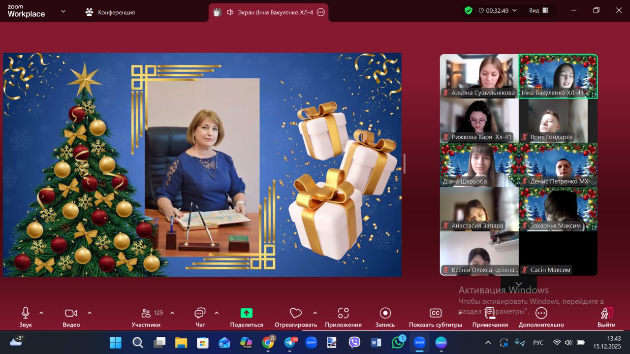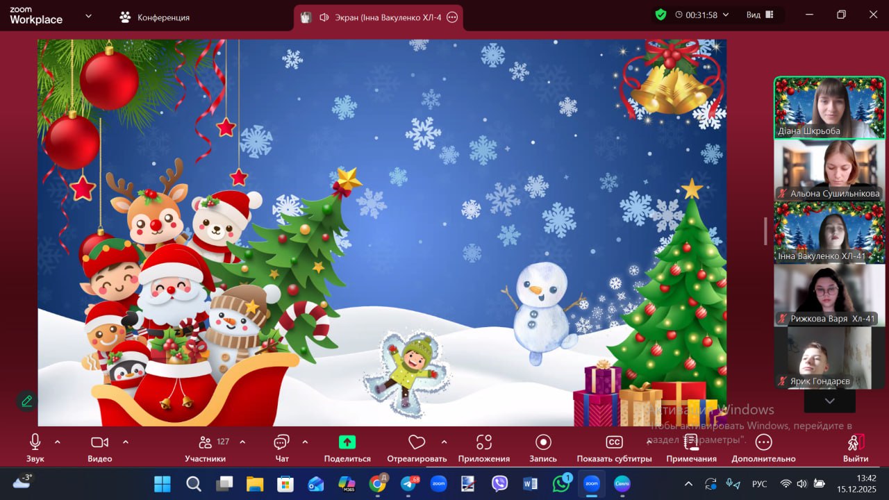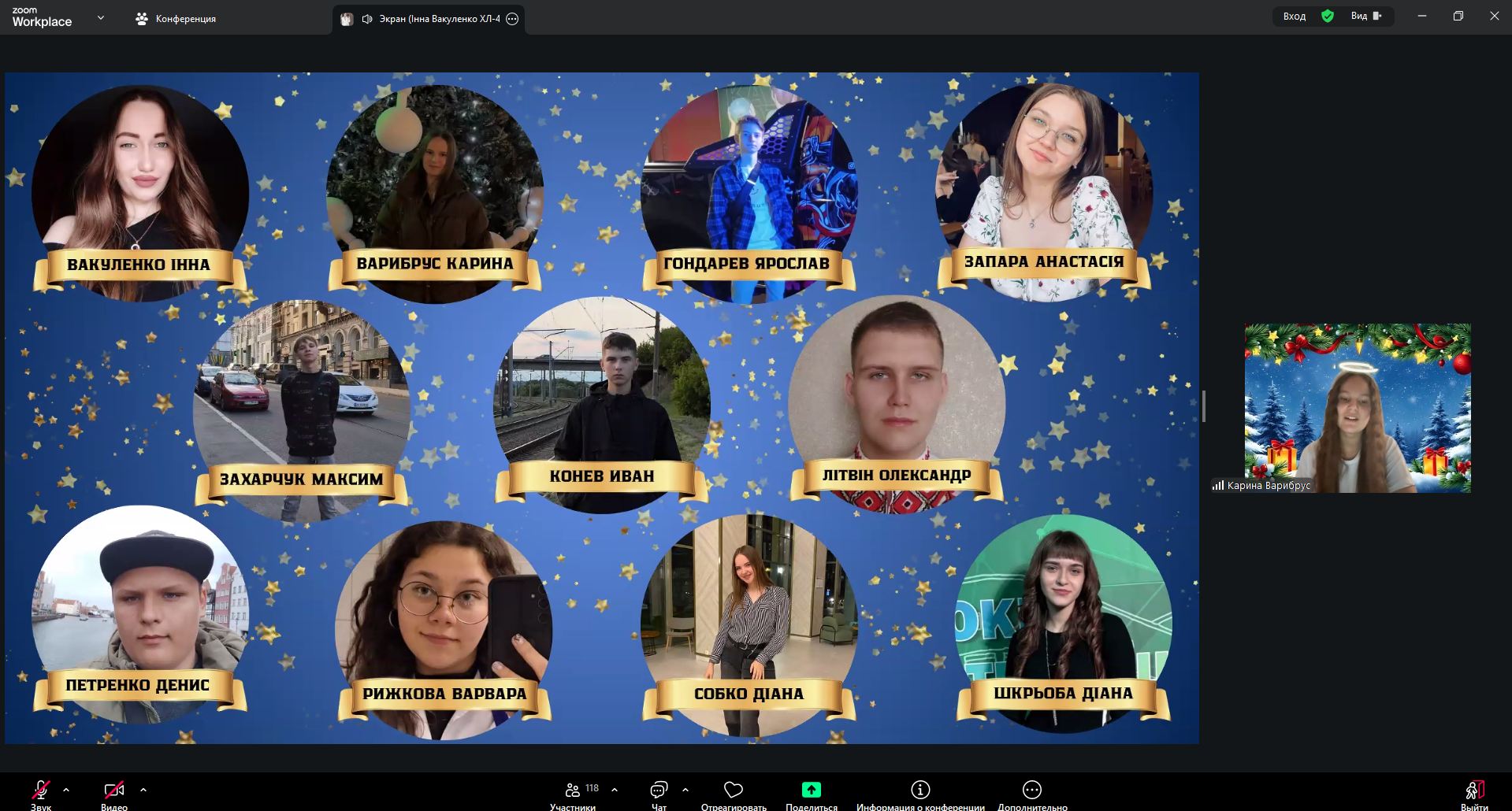 У програмі звучали новорічні вікторини, інтерактивні конкурси та різдвяні історії, які лунали з комп’ютерних екранів, створюючи відчуття єдності навіть у дистанційному форматі. Учасники активно долучалися до розваг, демонструючи кмітливість, гарний настрій і щире бажання розділити святкові емоції з колегами та друзями.