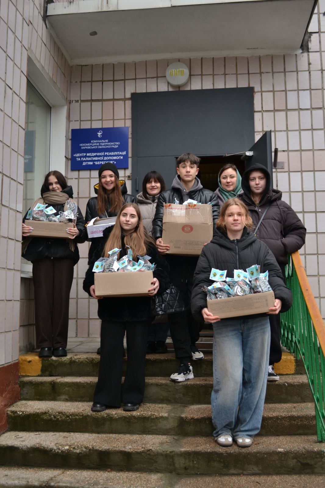 Напередодні новорічних свят, 17 грудня 2025 року, учасники волонтерського руху коледжу «Технології Добра», за ініціативи та підтримки директора коледжу Ольги БОНДАРЕНКО, подарували дітям КНП Харківської обласної ради «Центр медичної реабілітації та паліативної допомоги дітям «Берегиня» частинку тепла й віри у диво.