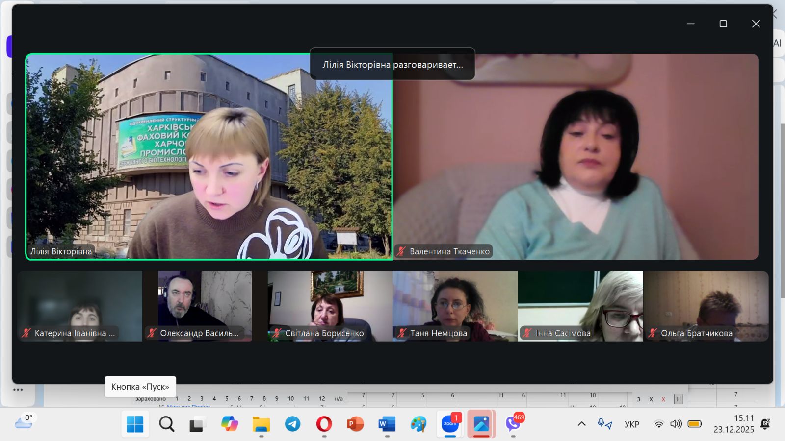 Питання професійного розвитку педагогічних працівників висвітлила завідувач навчально-методичного кабінету Ткаченко В.М. Зокрема, було затверджено план підвищення кваліфікації на 2026 рік, а також розглянуто підвищення кваліфікації викладачів за різними формами та видами, підтверджене відповідними сертифікатами. Окрему увагу приділено питанню підвищення рівня володіння іноземними мовами педагогічними працівниками коледжу.