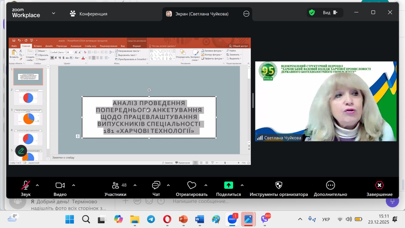 Заступник директора з НВР Чуйкова С.В. представила попередні результати анкетування щодо працевлаштування випускників коледжу.