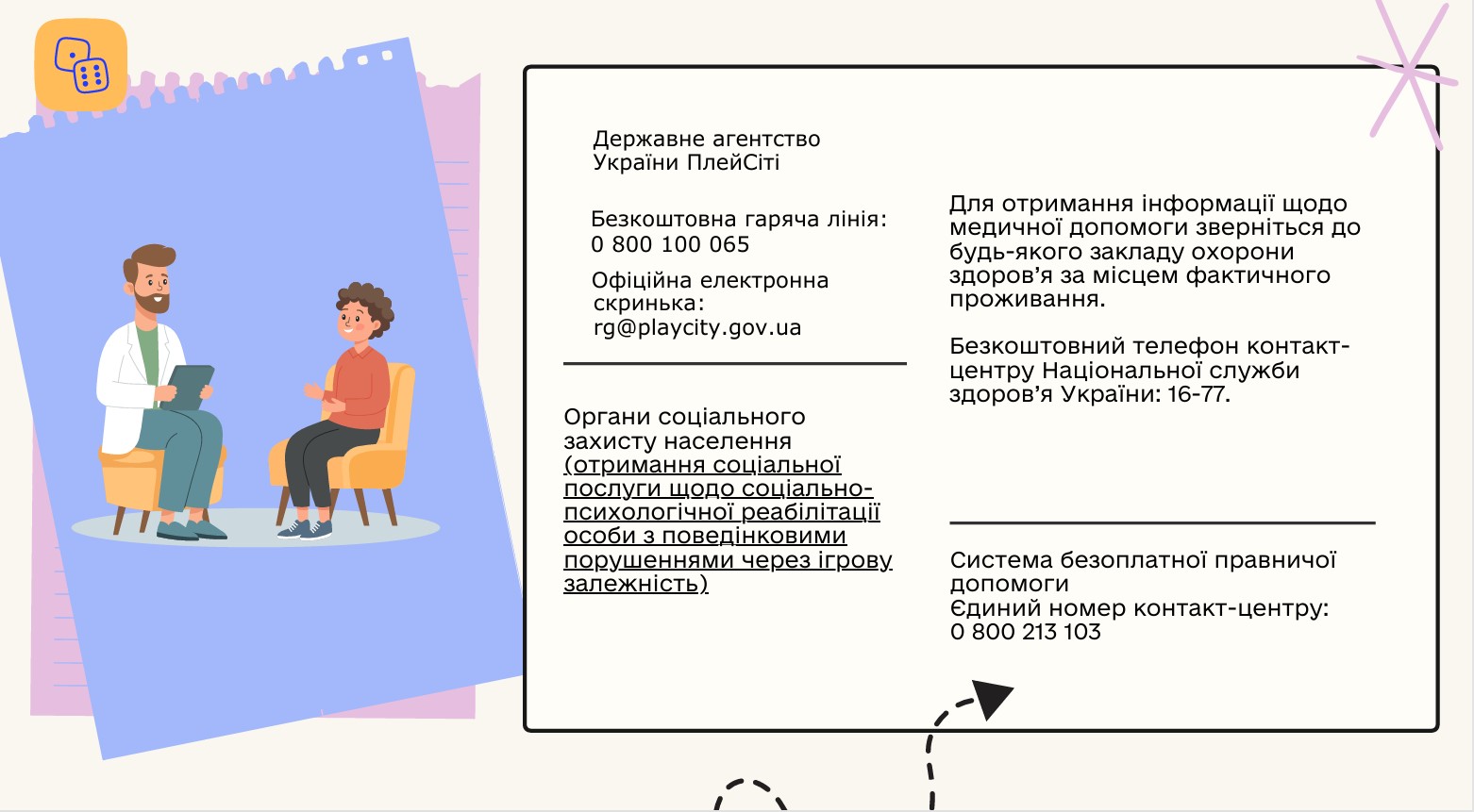 Інформаційно-просвітницькі матеріали, є важливим інструментом профілактики лудоманії і можуть бути використані під час виховних годин, тематичних бесід та профілактичних заходів з метою формування відповідального ставлення здобувачів освіти до азартних ігор і власного здоров’я.