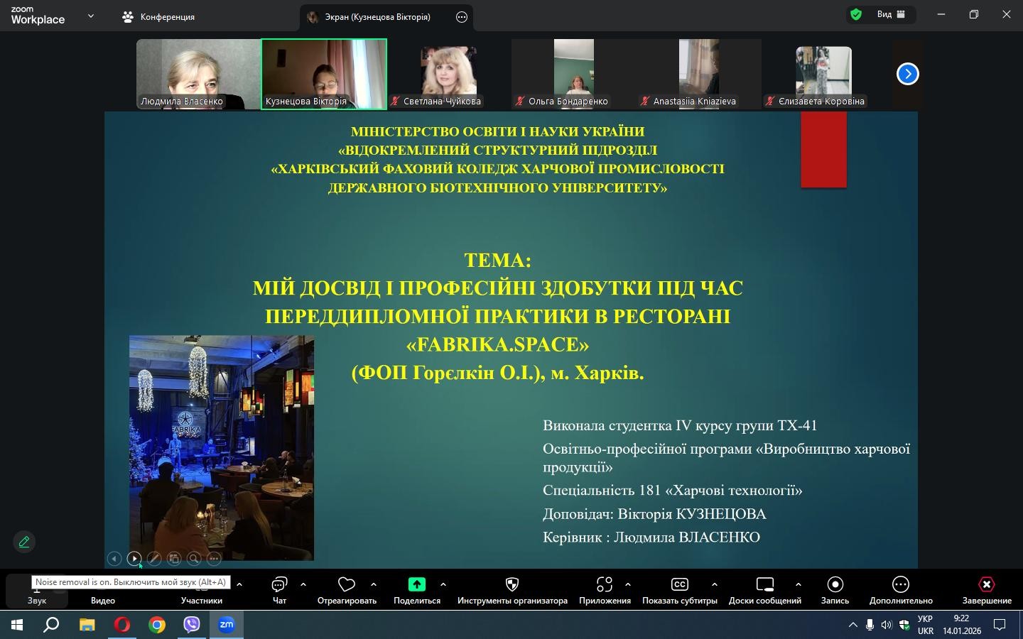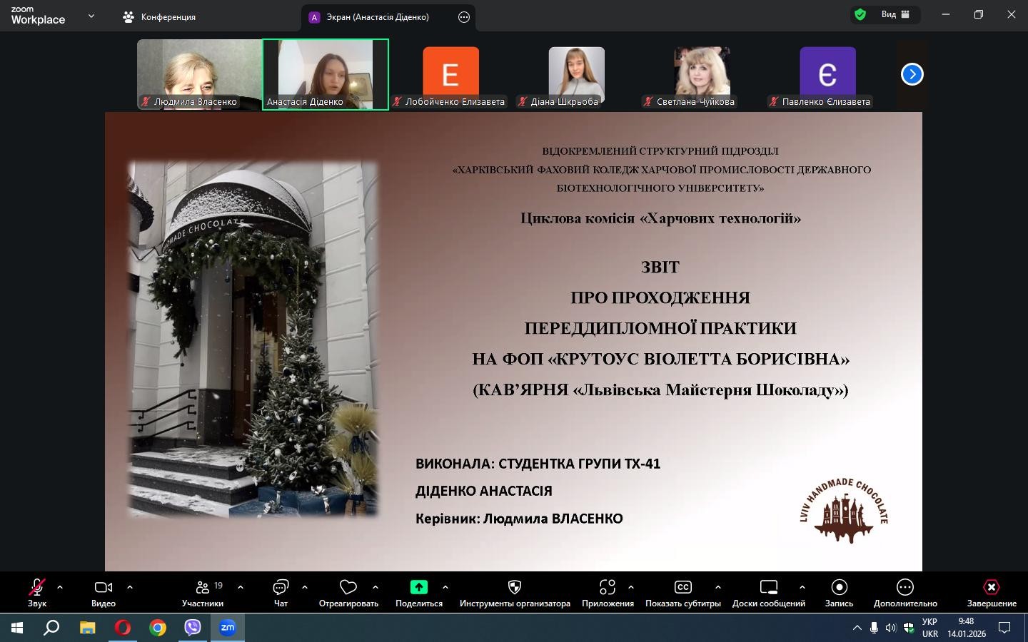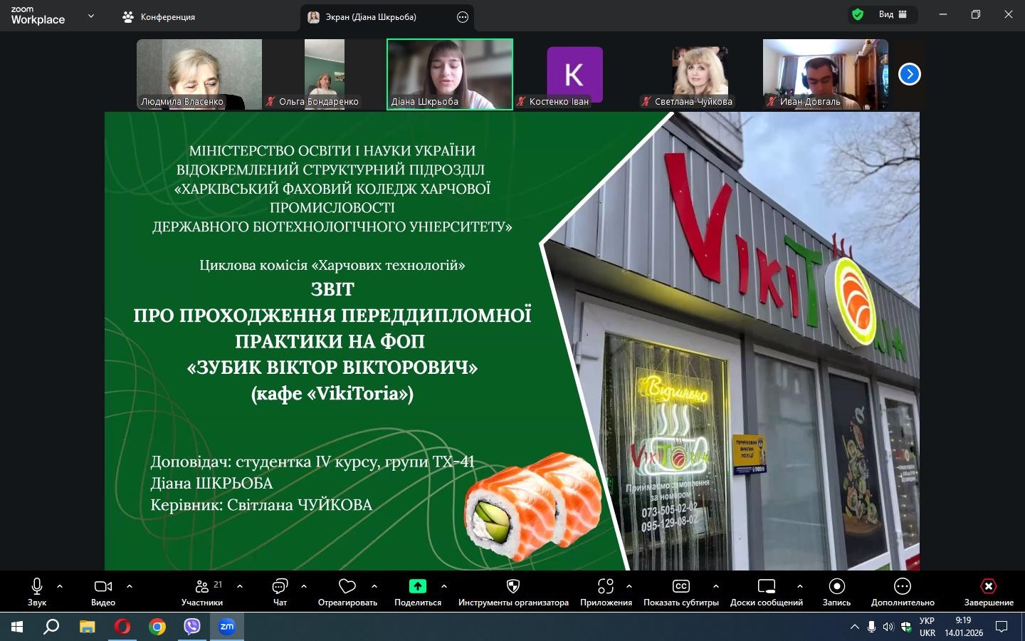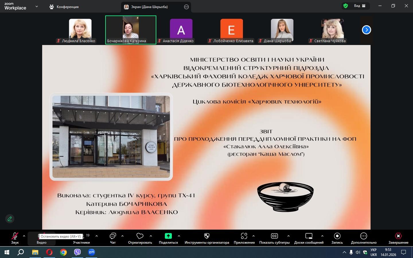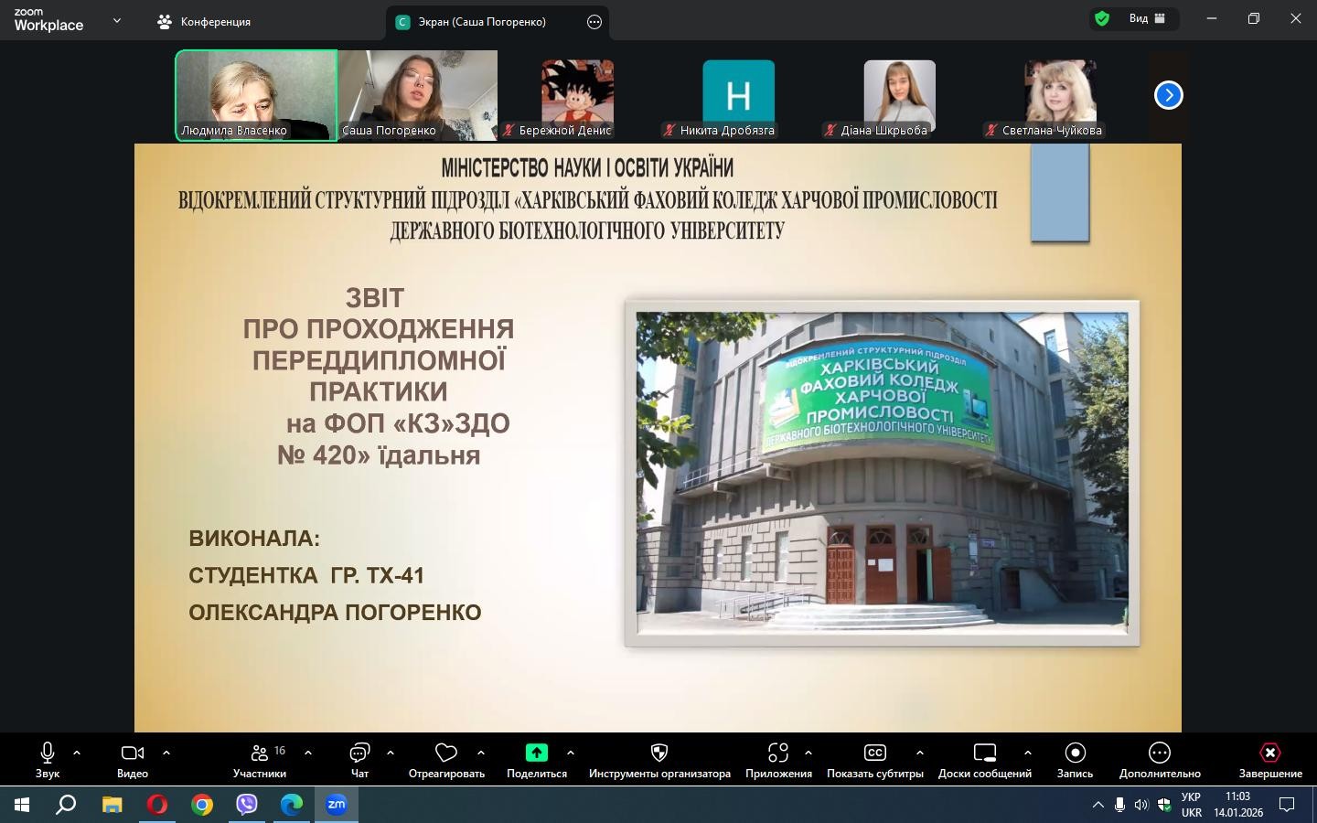 У коледжі відбувся захист звітів з переддипломної практики здобувачів освіти, які навчаються за освітньо-професійною програмою «Виробництво харчової продукції».