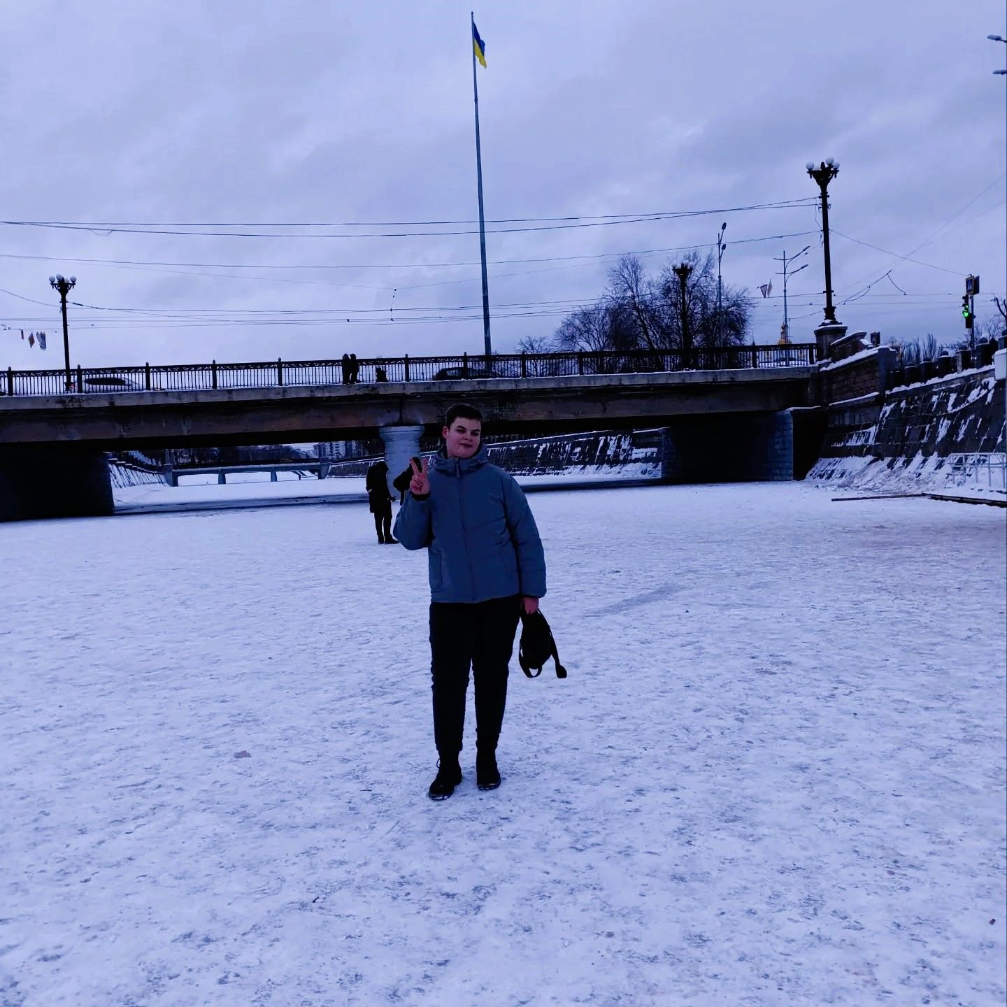 Перша ідея – біля Градусника! Ну а як же, це ж також про погоду! Не вдалося знайти. Зупинилися, подумали, замерзли, побігли шукати далі та за компанію трохи зігрітися (мороз мінус12!). Думали-думали, шукали-шукали, навіть на Лопань, вкриту льодом, спускалися! Фізику знають добре, вміють розрахувати, коли безпечно ходити по льодові.