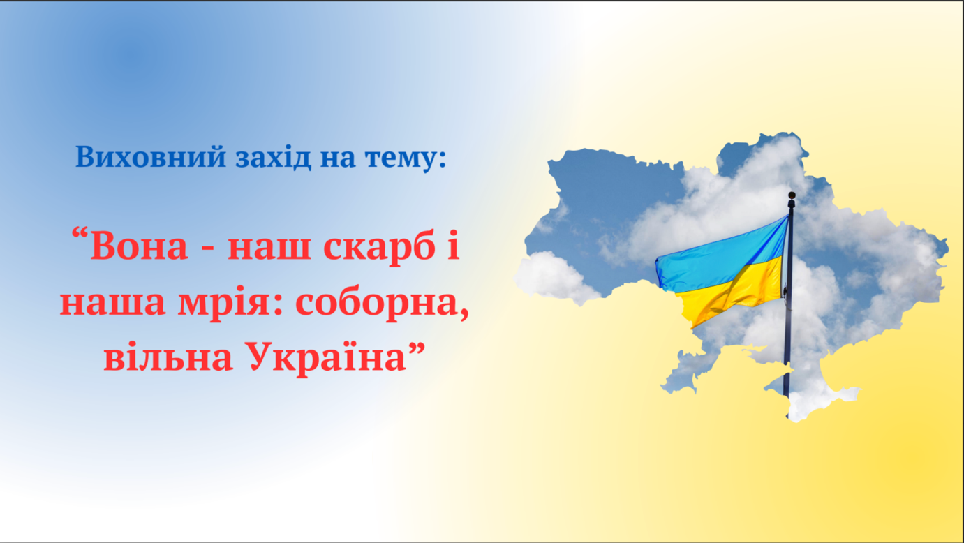 До Дня Соборності України у нашому закладі освіти відбулася змістовна та емоційно насичена виховна година на тему «Вона – наш скарб і наша мрія: соборна, вільна Україна», яку підготували та провели викладачі, класні керівники Дорошенко Т.І. та Головаш І.О.