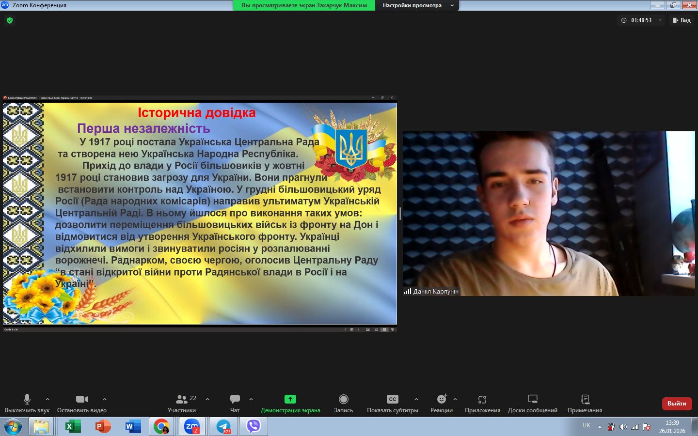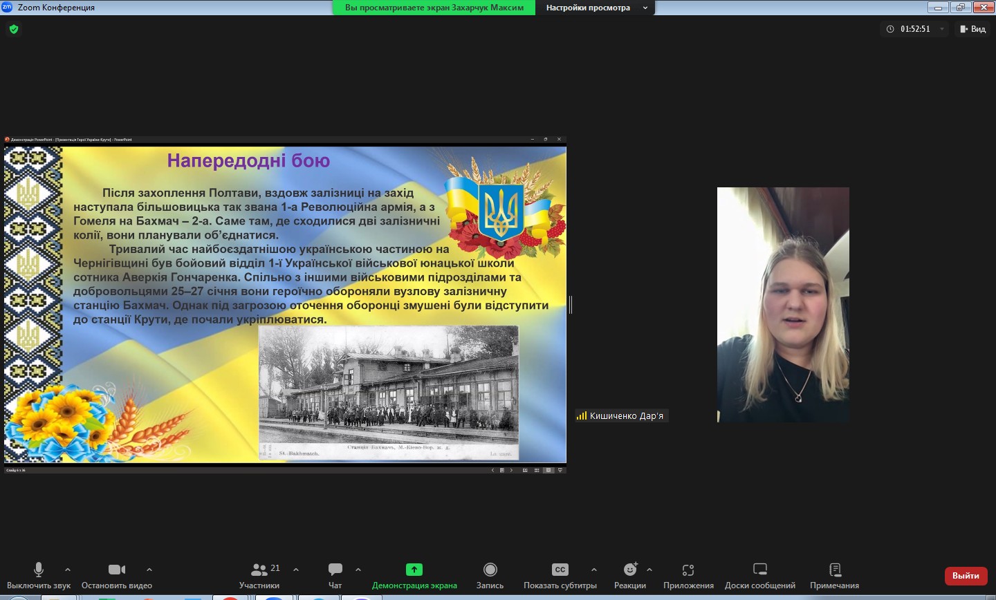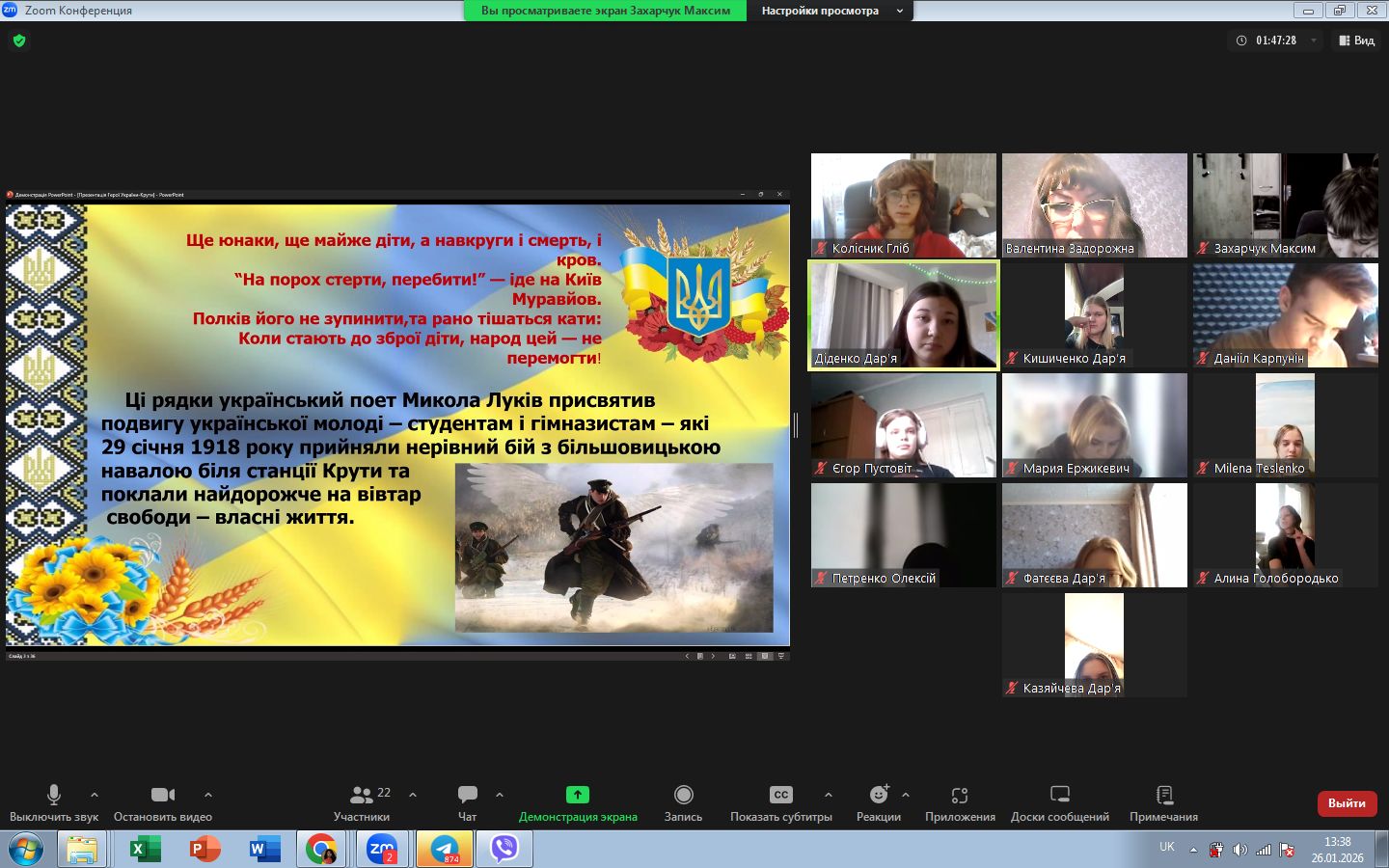 До 29 січня, коли українці відзначають День пам’яті Героїв Крут, у закладі було проведено виховну годину, присвячену подвигу української молоді початку ХХ століття.