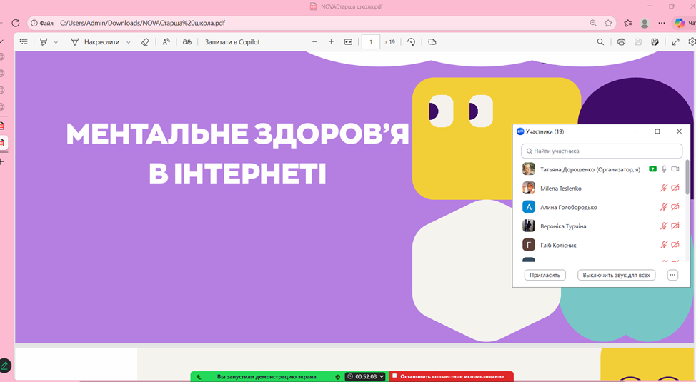 Проведена робота спрямована на розвиток цифрової компетентності студентів та формування усвідомленого ставлення до власного ментального благополуччя в цифровому середовищі.