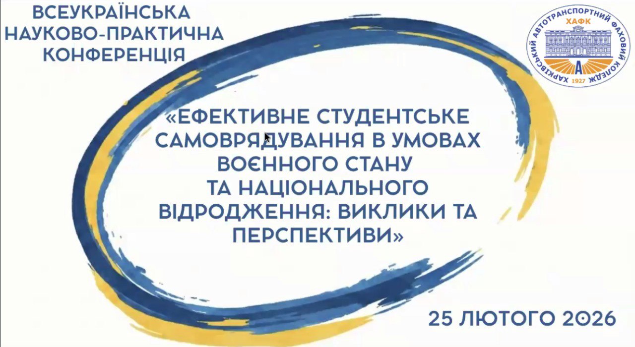 25 лютого на базі Харківського автотранспортного фахового коледжу відбулася Всеукраїнська науково-практична конференція «Ефективне студентське самоврядування в умовах воєнного стану та національного відродження: виклики та перспективи».