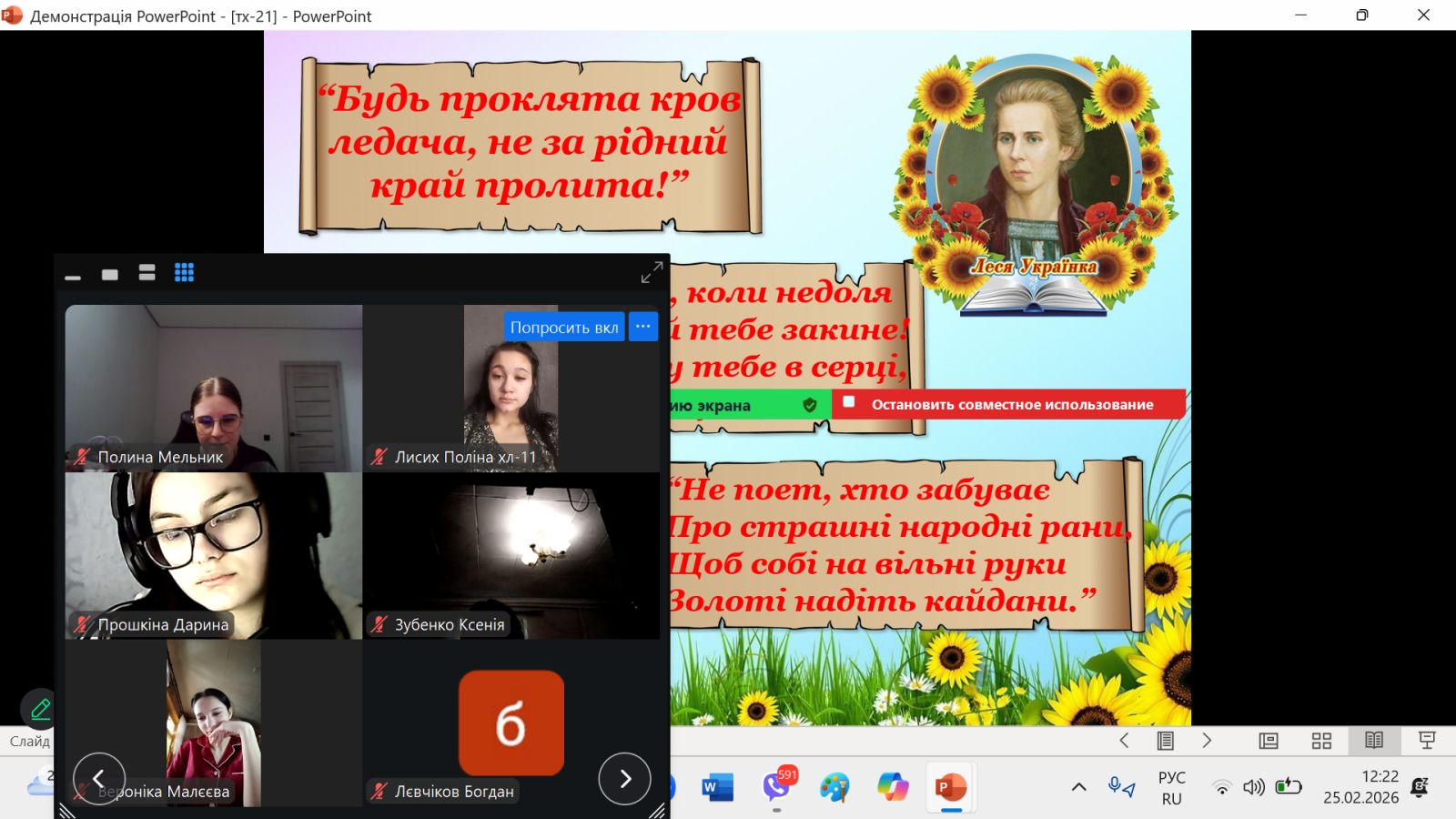 Щиро дякуємо всім учасникам і організаторам заходів за активність, творчість і небайдужість. Пам’ятаємо: «Ні! Я жива! Я буду вічно жити!» — ці слова Лесі Українки звучать сьогодні особливо актуально та символічно.