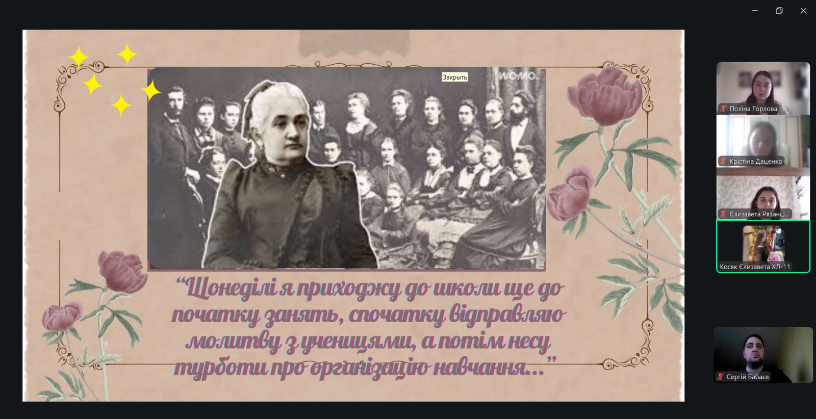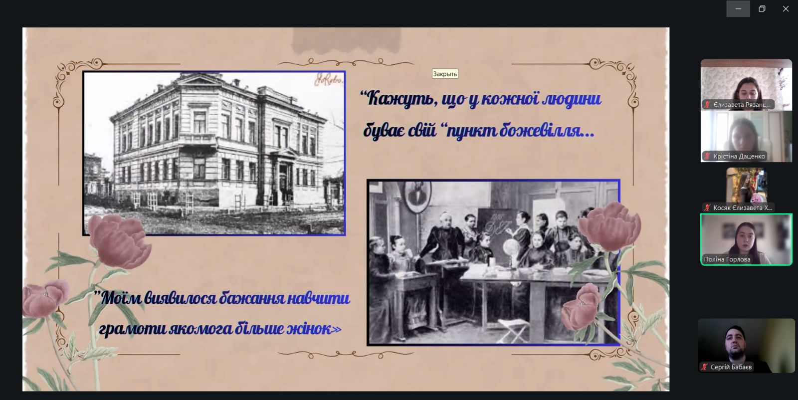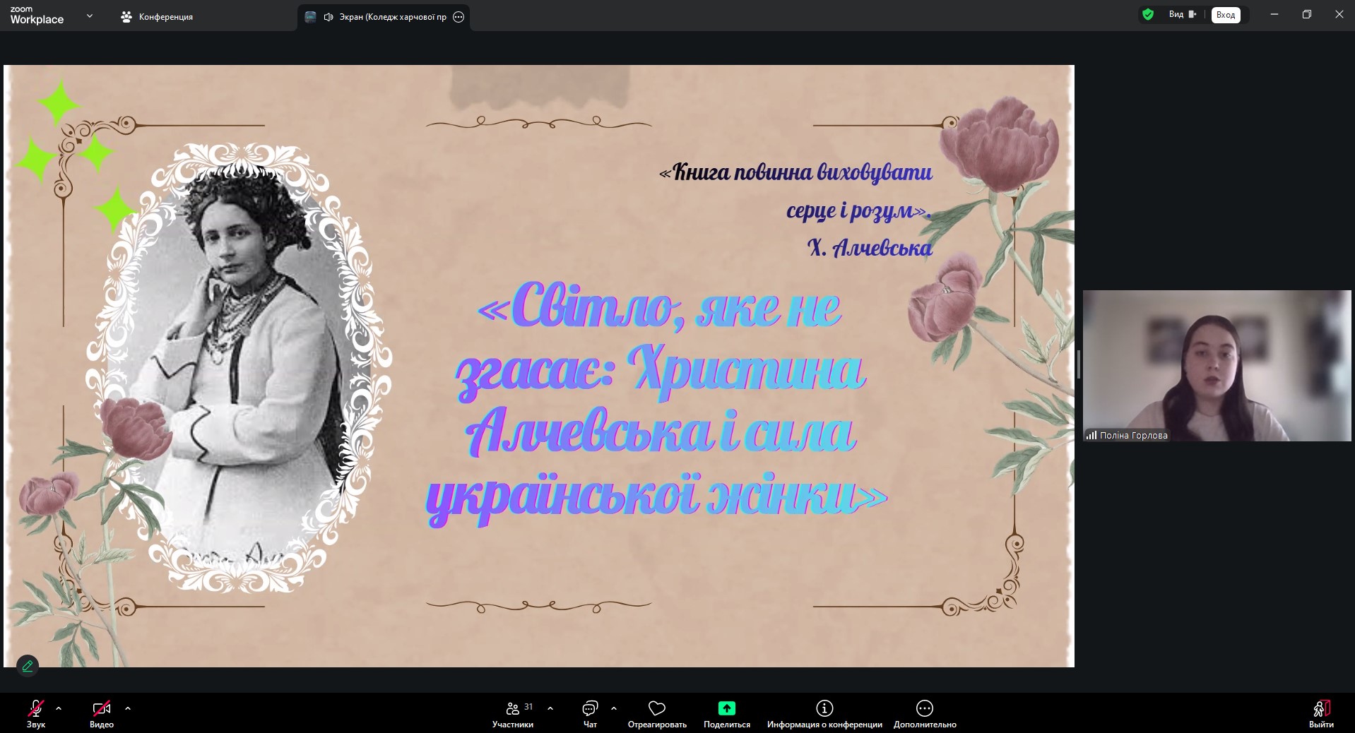 Корпорація «Незгасне світло», до складу якої увійшли студентки коледжу Єлизавета Рязанцева, Єлизавета Косяк, Крістіна Даценко та Поліна Горлова, презентувала дослідження культурних, політичних і соціально-економічних досягнень українських жінок, зокрема видатної просвітниці Христини Алчевської. Керівники корпорації — викладачі коледжу Катерина Козуб та Валентина Задорожна.
