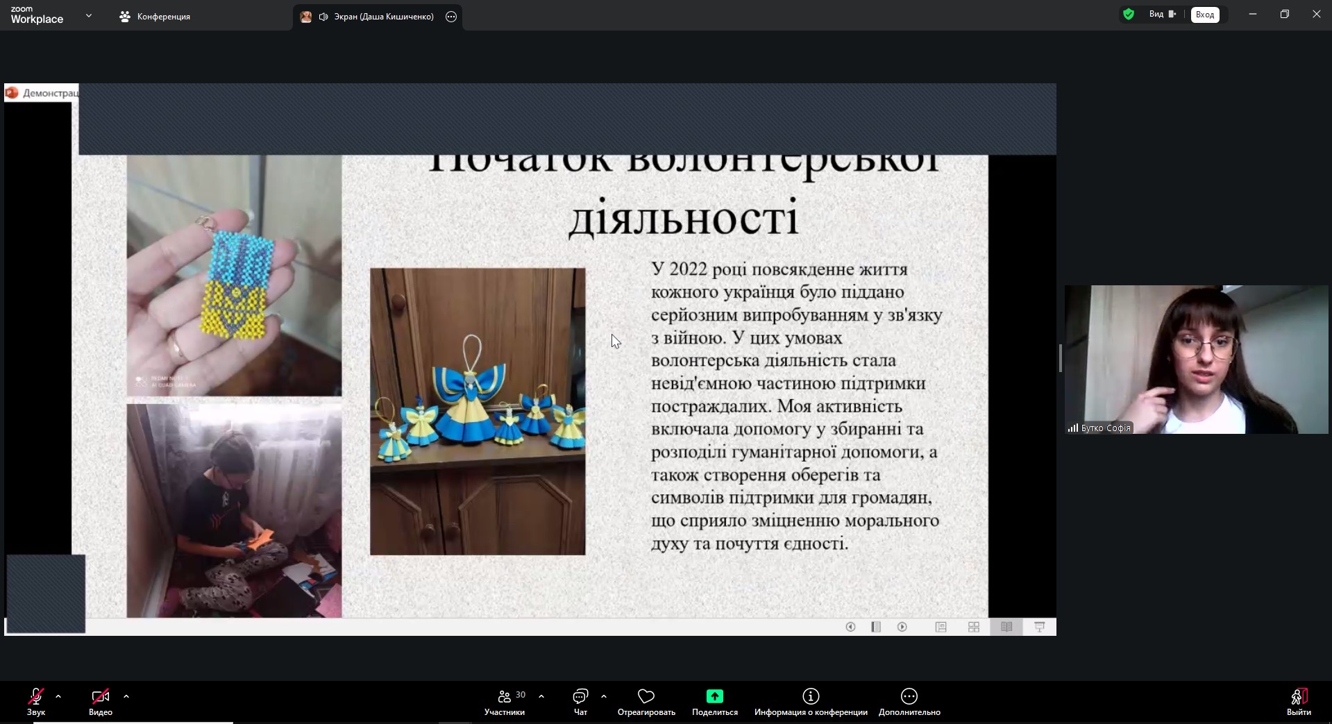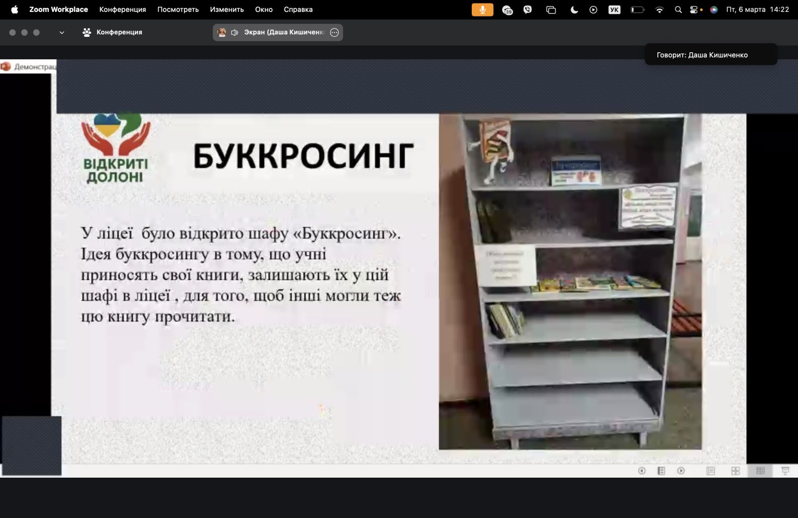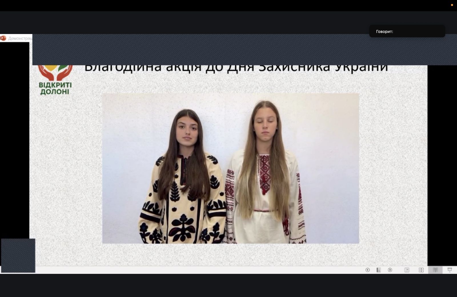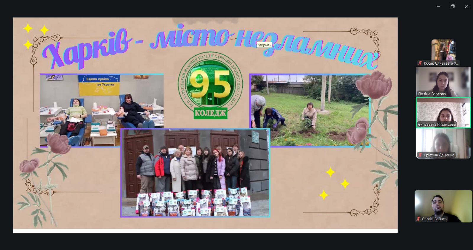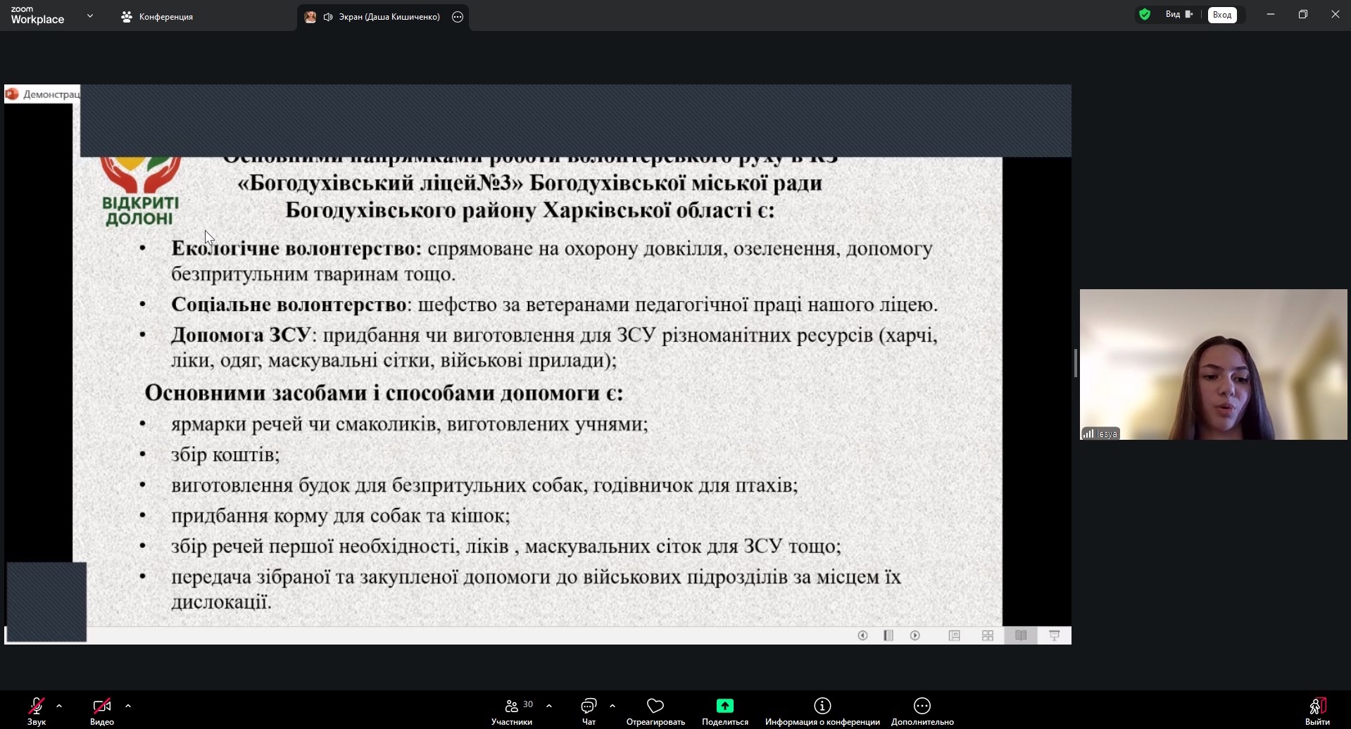 Корпорацію «Відкриті долоні» представляли здобувачі освіти ліцею Софія Бутко та Анна Панова, а також випускниця ліцею і студентка нашого коледжу Дар’я Кишиченко. Команда презентувала результати участі шкільної спільноти Богодухівщини у волонтерському русі. Керівник корпорації — учителька ліцею Людмила Кишиченко.
