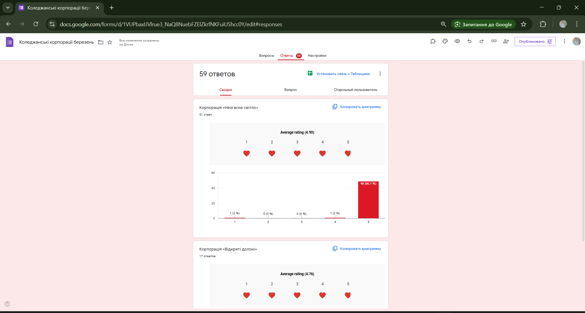 За результатами голосування членів журі у номінації «Глядацькі симпатії» перемогу здобула корпорація «Незгасне світло».