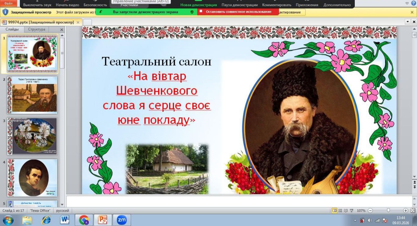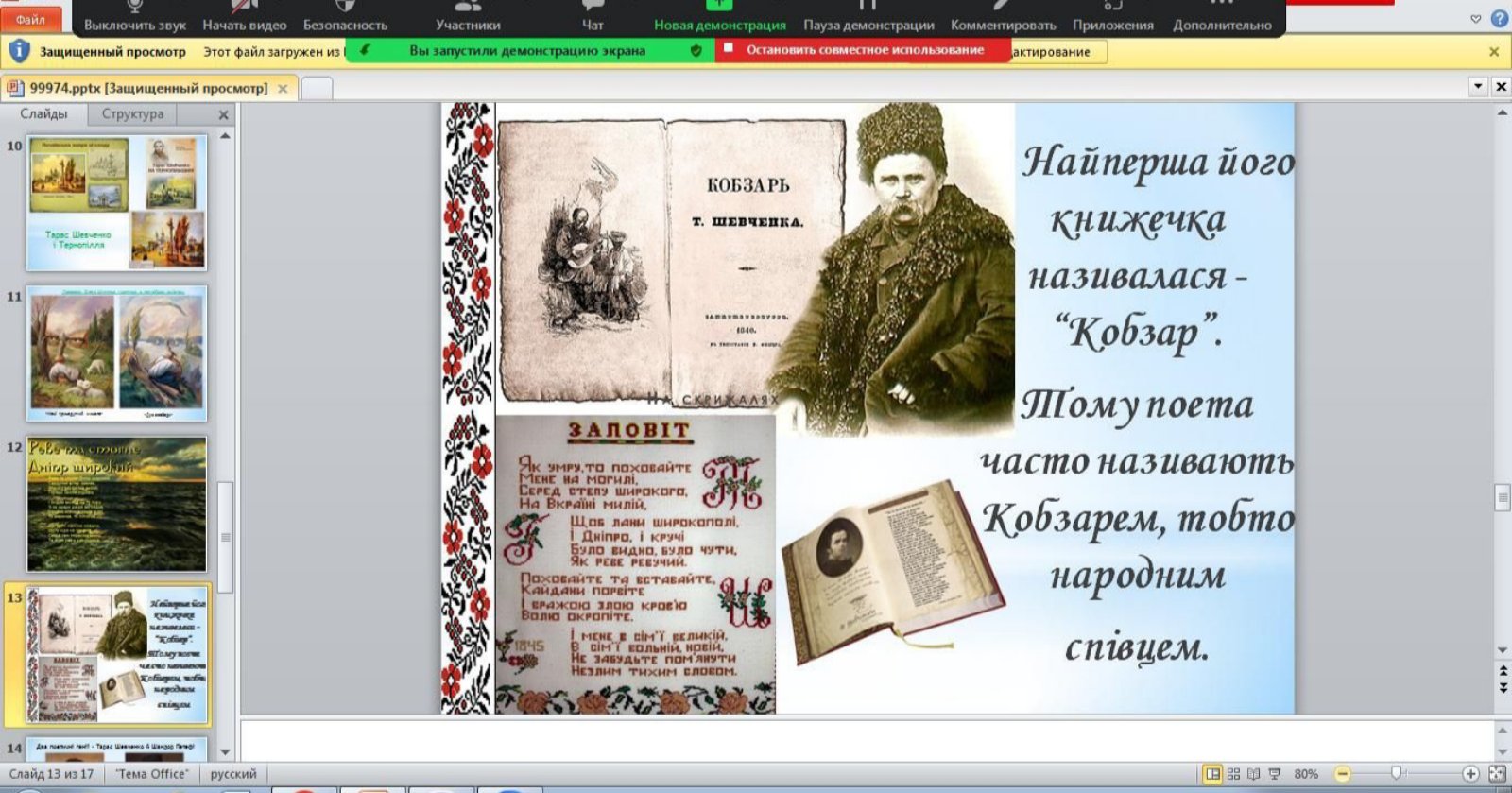 Найкращі роботи були презентовані на літературному онлайн-марафоні «Єднаймо душі словом Кобзаря!», організованого Державною установою «Науково-методичний центр вищої та фахової передвищої освіти».