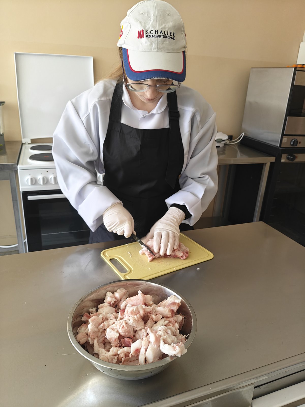 Приготування м’ясних виробів – це гармонійне поєднання технології, професійної інтуїції та любові до обраної справи. Під час заняття студенти із захопленням занурилися у світ м’ясних делікатесів, відчувши, що навчання може бути не лише корисним, а й емоційно насиченим.