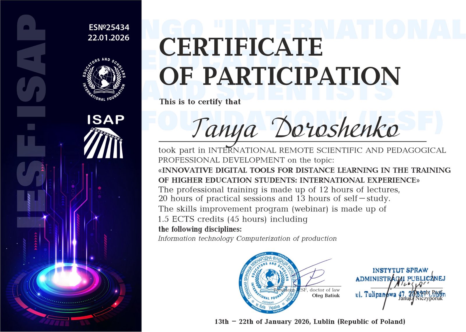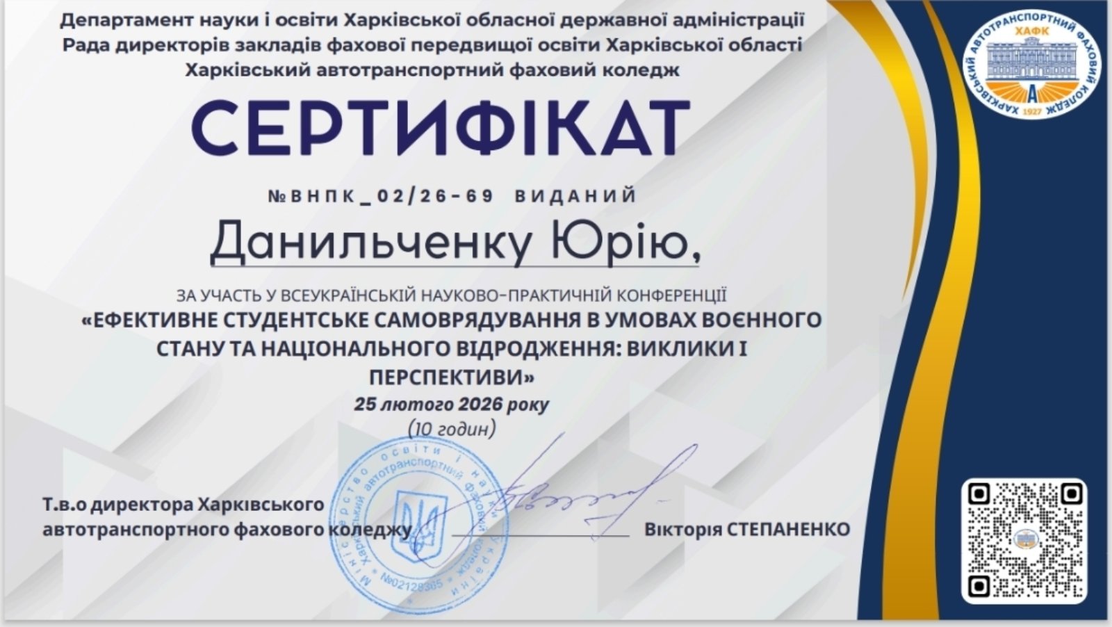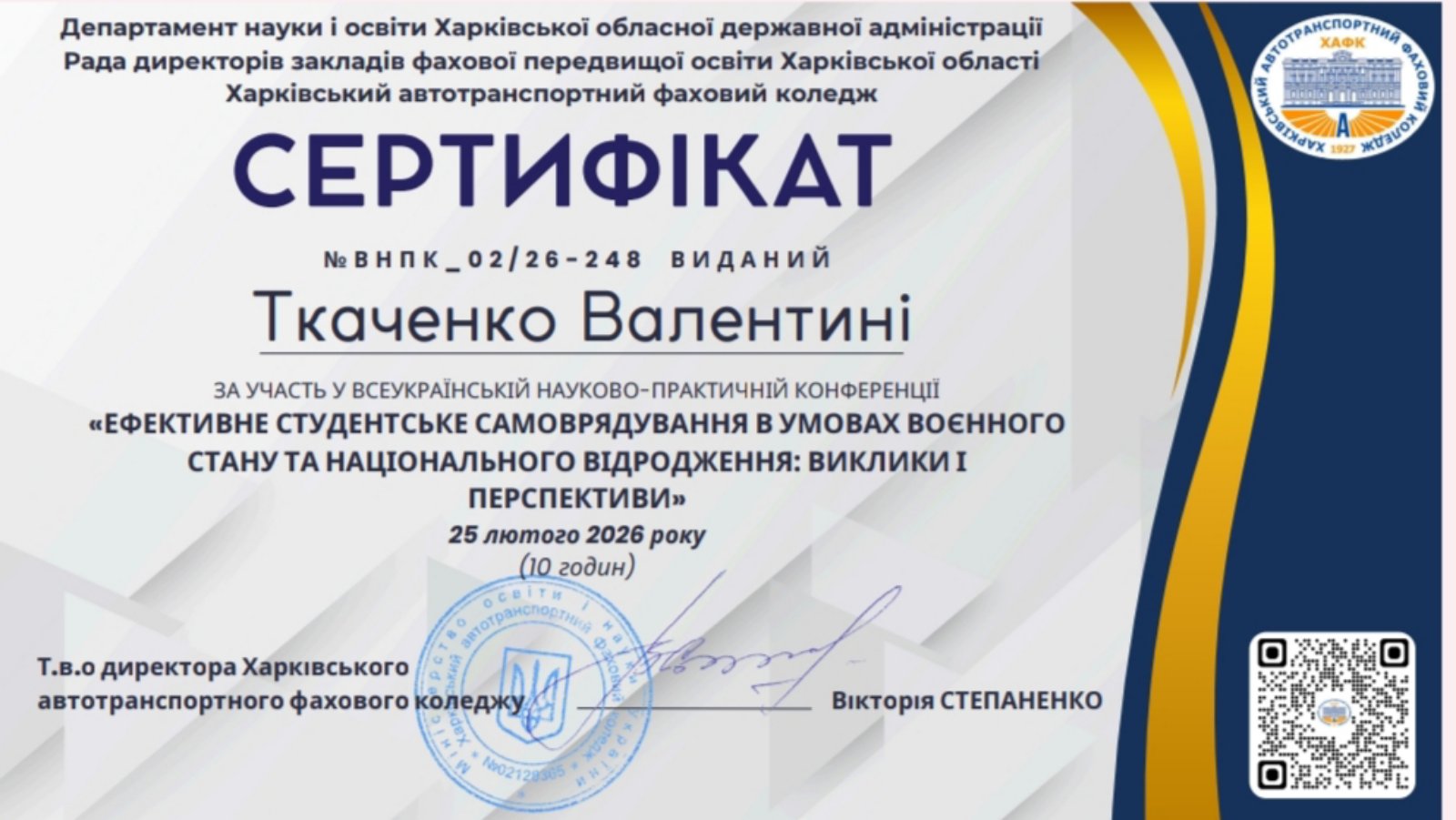 Згідно з Положенням про підвищення кваліфікації педагогічних працівників ВСП «Харківський фаховий коледж харчової промисловості ДБТУ», було зараховано навчальні години таким викладачам коледжу: