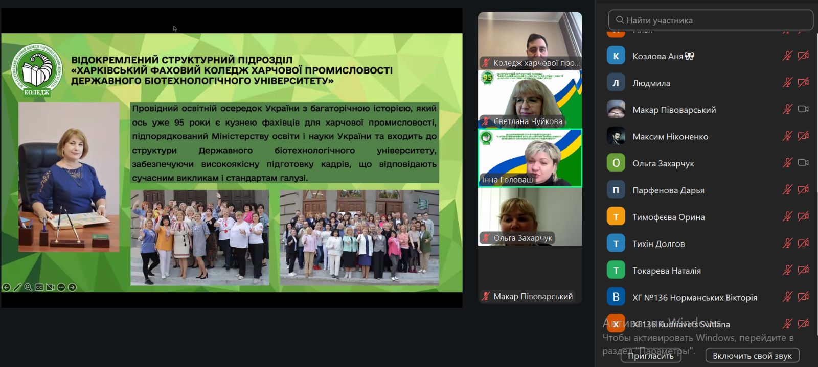 Змістовним доповненням до програми став виступ заступника директора з навчально-виробничої роботи Світлани ЧУЙКОВОЇ. У своїй доповіді вона висвітлила сучасний стан та перспективи розвитку матеріально-технічної бази коледжу, зокрема оновлення лабораторного обладнання та модернізацію навчально-виробничих майстерень. Учасники також отримали актуальну інформацію щодо організації виробничої практики, співпраці з підприємствами галузі та можливостей міжнародного стажування.