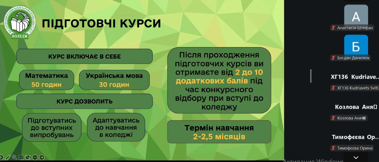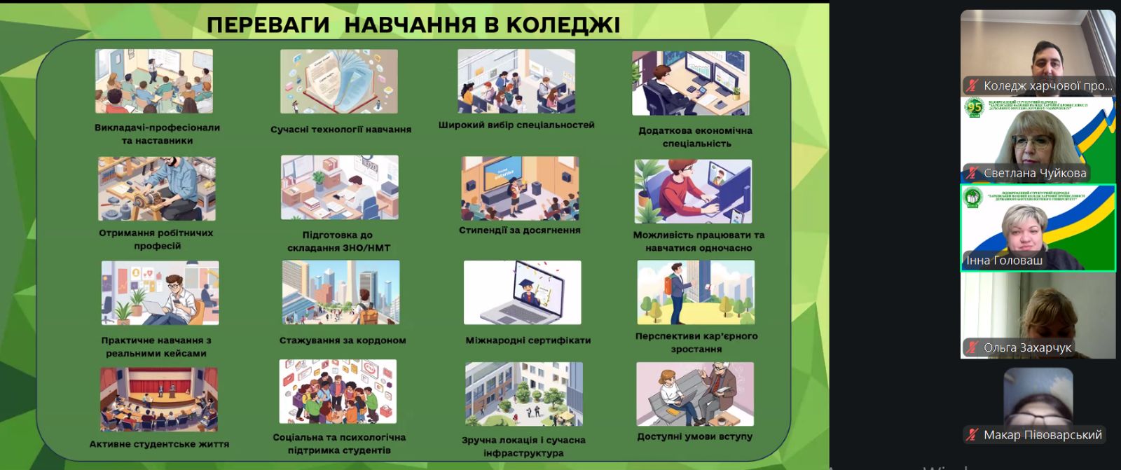 Спікерами заходу виступили досвідчені викладачі коледжу Інна ГОЛОВАШ та Сергій БАБАЄВ. Разом із представниками Студентського парламенту вони презентували майбутнім абітурієнтам сучасний підхід до навчання, що поєднує ґрунтовну теоретичну підготовку з практичною діяльністю у сучасних лабораторіях і навчально-виробничих майстернях. Окрему увагу було приділено активному студентському життю, яке сприяє розвитку лідерських якостей, творчих здібностей і формуванню громадянської позиції.