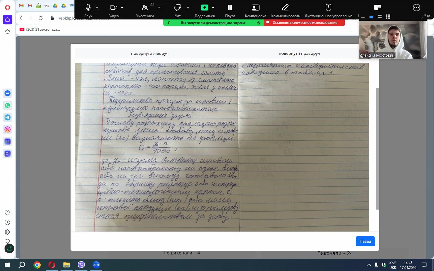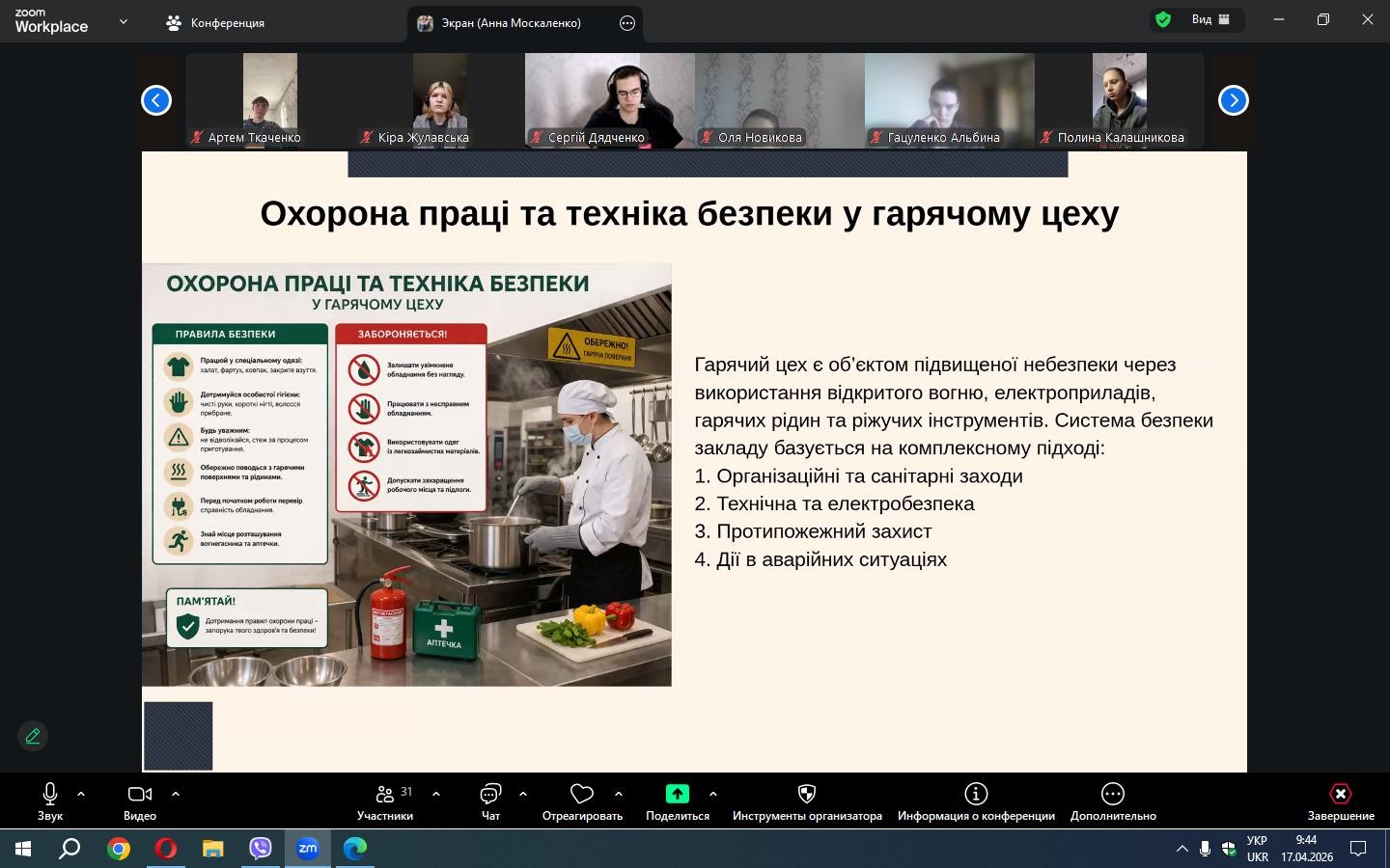 17 квітня 2026 року у коледжі відбулася важлива освітня подія — контрольний замір знань та захист курсових робіт студентів групи ТХ-31, які навчаються за спеціальністю 181 «Харчові технології» в межах освітньо-професійної програми «Виробництво харчової продукції».