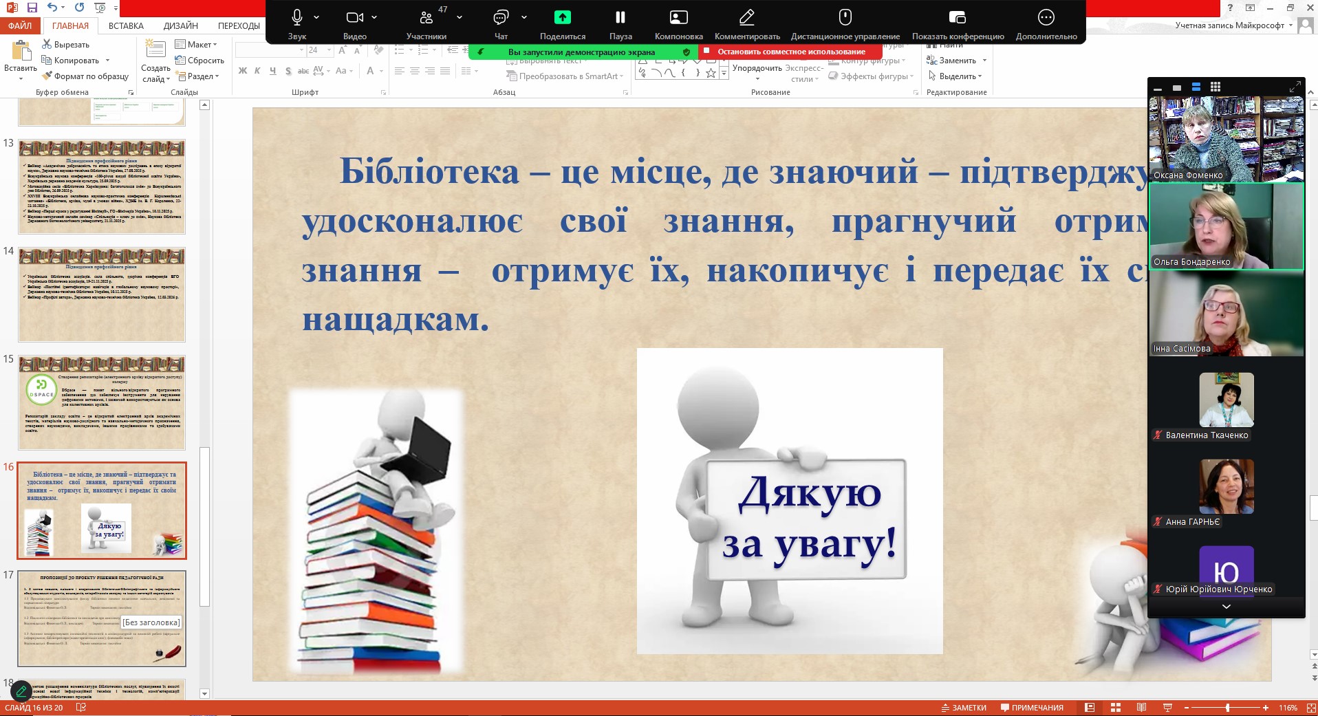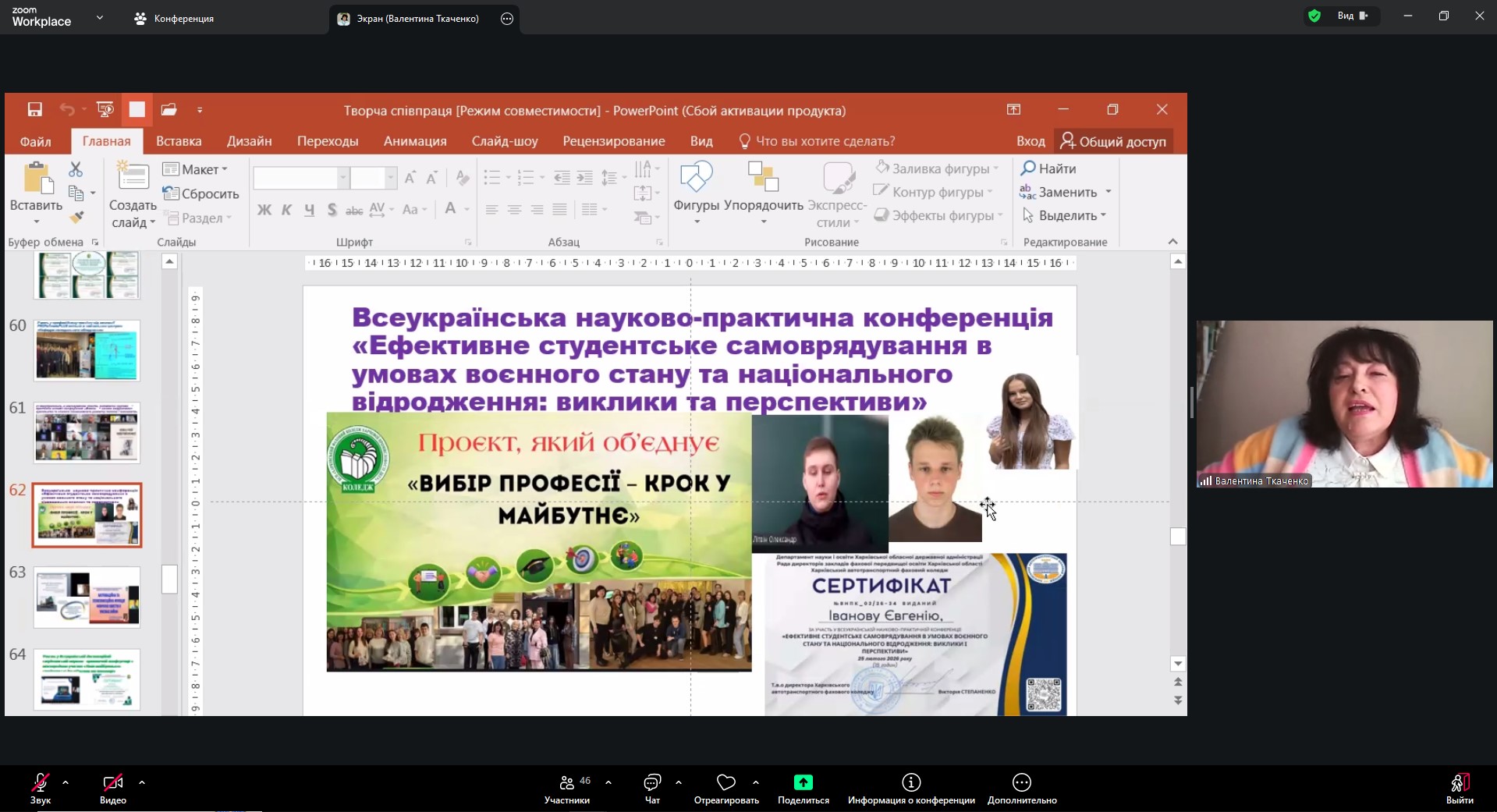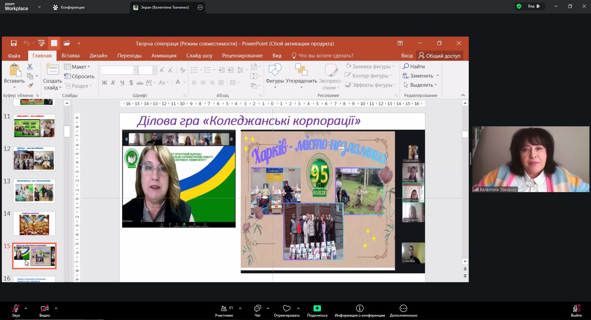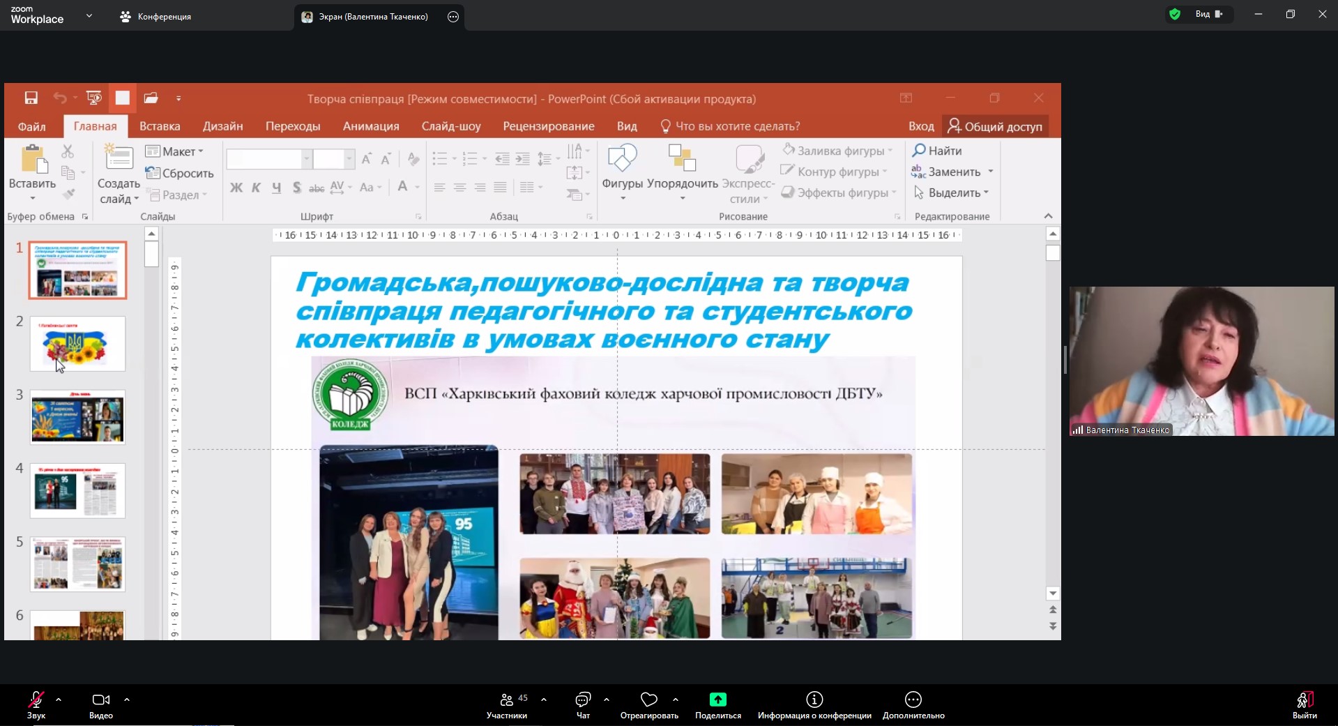 Однією з центральних тем стала взаємодія педагогічного та студентського колективів в умовах дистанційної освіти. Завідувач навчально-методичного кабінету В.М. Ткаченко представила доповідь щодо розвитку громадської, пошуково-дослідної та творчої співпраці, наголосивши на важливості активної участі студентів у спільних проєктах навіть в онлайн-форматі.