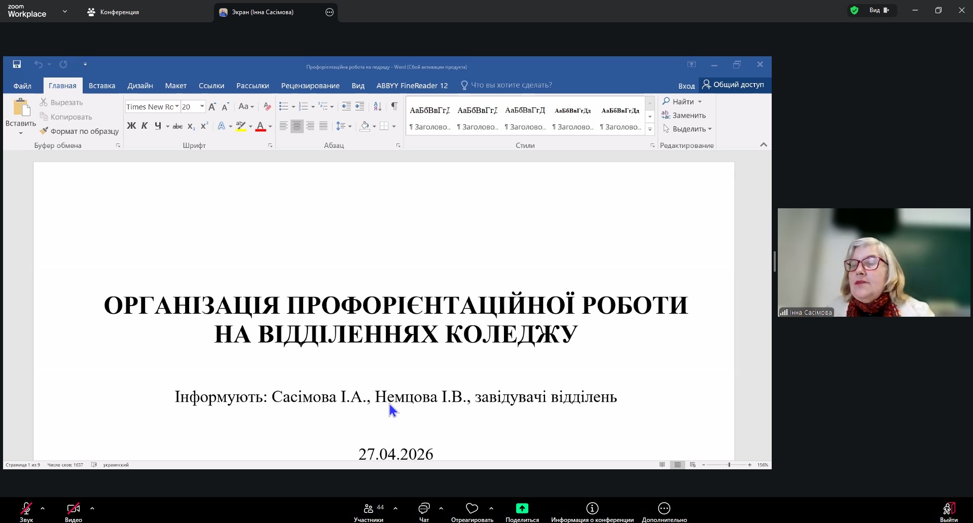 27 квітня 2026 року відбулося засідання педагогічної ради коледжу, під час якого розглянули низку важливих питань, що стосуються організації освітнього процесу, вступної кампанії та підвищення якості навчання.